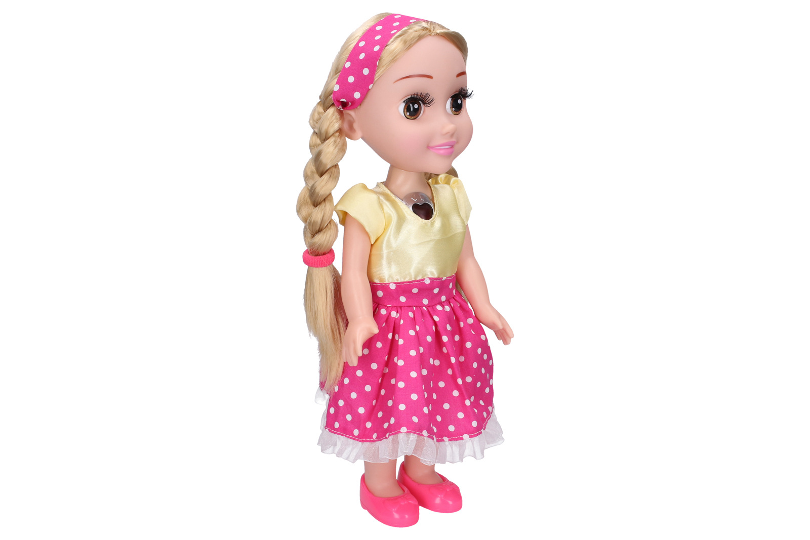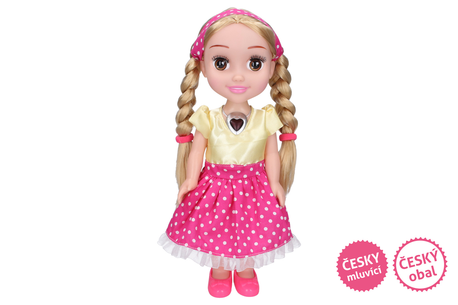 Panenka Maruška se stane tvou nejlepší kamarádkou, se kterou zažiješ spoustu zábavy a dobrodružství! Zazpívej si s ní pohádkové písničky a staň se princeznou! Stiskem náhrdelníku si vyber jednu ze sedmi úryvků z pohádek a přenes se do kouzelného světa kde dobro vyhrává nad zlem. Náhrdelník bliká, když panenka zpívá. Možnost zvolit dvě úrovně hlasitosti. Stiskni Srdce – zazpívá, stiskni podruhé - zastaví, stiskni potřetí - zazpívá další písničku. Písničky: Rozvíjej se poupátko..., Tři oříšky pro Popelku..., Jestli to nebude láska..., Větře větříčku..., Když se načančám..., Z pekla štěstí..., A pohádky je konec... Rozměr panenky (v): 33 cm. Baterie: 3xAAA (jsou součástí balení). Věk: 3+