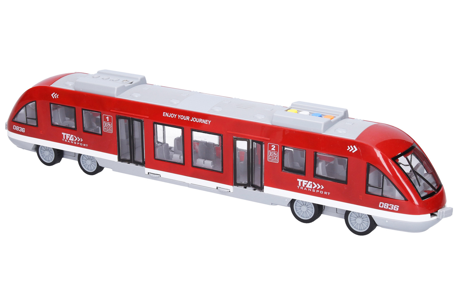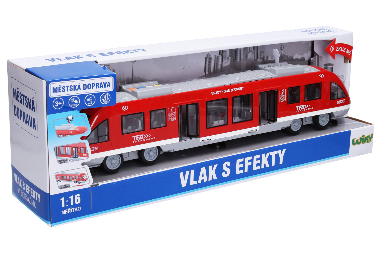 Tramvaj v měřítku 1:16 potěší každého malého milovníka MHD. Je vybavena světelnými a zvukovými efekty, které se aktivují čtyřmi tlačítky na střeše. Tramvaj jezdí na setrvačník. Baterie: 3 x AG13, jsou součástí balení. Rozměry tramvaje: 9 x 44 x 5,8 cm. Rozměry balení: 16,5 x 48 x 11 cm. Věk: 3+