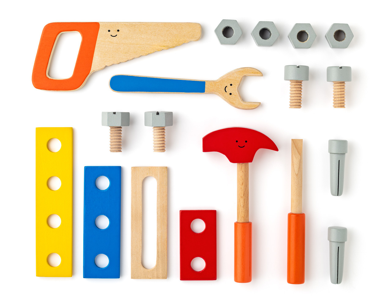 Tato hračka formou hry rozvíjí jemnou motoriku a technické chápání. Brašna současně slouží jako základna pro práci s podložkami a šrouby. Vše je vyrobeno z kvalitního dřeva. | Věk: 3+ | Rozměr: 20 x 12x 14,5 cm| Počet ks: 18
