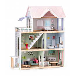 Vila pro panenky ve viktoriánském stylu je ve všech patrech plně vybavena nábytkem. Její součástí jsou i dvě panenky, které v domě bydlí. Vila je pro hraní přístupná ve všech svých patrech, má otvírací křídlové dveře a mobilní schodiště. Obsahuje 30 ks příslušenství. Její velikost a barevné provedení je nepřehlédnutelné. Věk: 3+ | Rozměr: 58 x 26 x výška 64 cm