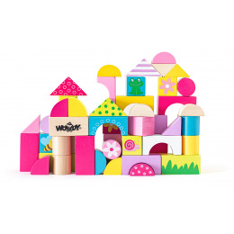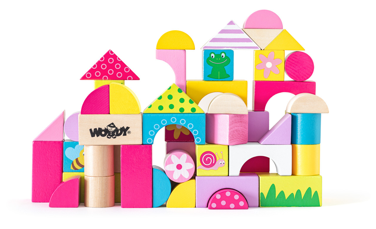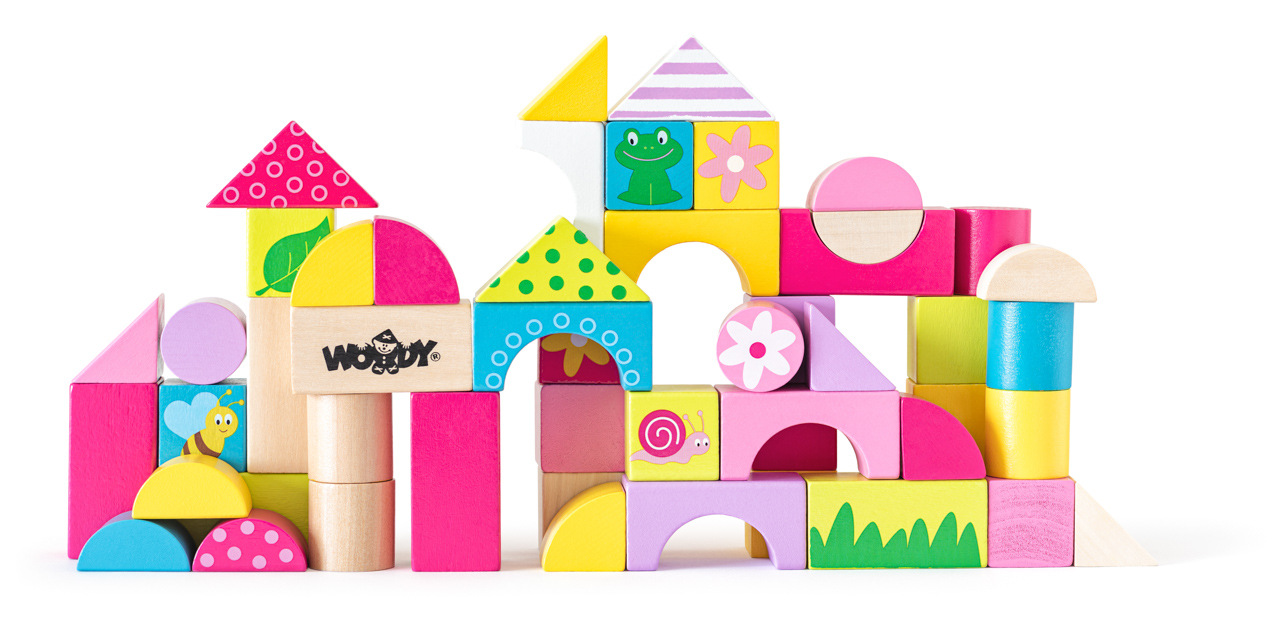 Klasická stavebnice z barevných a přírodních kostek ve vysoce kvalitním provedení. Kostky jsou umístěny v kyblíku, jehož víko je zároveň prostrkávadlem pro kostky všech tvarů, které stavebnice obsahuje. | Velikost krychle: 2,5 cm | Věk: 2+ | Počet ks: 50
