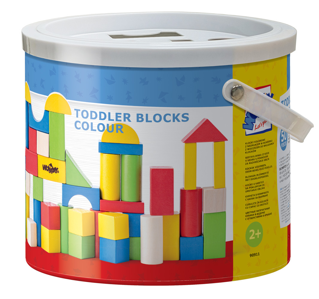 Klasická stavebnice z barevných a přírodních kostek ve vysoce kvalitním provedení. Kostky jsou umístěny v kyblíku, jehož víko je zároveň prostrkávadlem pro kostky všech tvarů, které stavebnice obsahuje. | Velikost krychle: 3cm | Věk: 1+ | Počet ks: 100