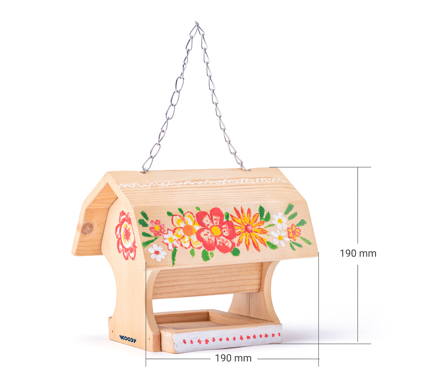Krmítko je ideálním místem pro pozorování ptáků. Učí děti poznávat jejich jednotlivé druhy. Naše krmítko je vyrobeno z přírodního dřeva. Dodáváme ho spolu s barvičkami a štětcem tak, aby si ho mohlo dítě pomalovat dle své vlastní fantazie. Krmítko je určeno k zavěšení. Rozměr: 19 x 13,5 x 16 cm