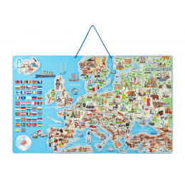 Naučné puzzle, školní pomůcka a společenská hra v jednom! Cílem je naučit dítě vnímat Evropu jako celek plný zajímavostí. Dítě pokládá dílky znázorňující jednotlivé státy nebo jejich části na magnetickou plochu. Učí se tak poznat, kam jednotlivé dílky patří. Později už bezpečně ví a osvojí si znalost, kde a na jaké části „starého kontinentu“ se jednotlivé země nacházejí. Díky obrázkům umístěným na každém dílku si děti ihned uvědomí, co je pro každou zemi charakteristické, co se kde pěstuje, vyrábí, těží, kde jaká zvířata žijí, event., kde se jaká stavba, budova, hrad či zámek nachází. S kompletně poskládanou mapou si pak s rodiči nebo kamarády zahrají hru, která bystří smysly a trénuje postřeh. Design a kresby pocházejí od českých designerů. | Obsahuje: 192 dílků. Rozměr: 75 x 45 x 0,5 cm.| Věk: 4+ | Návod ke hře: Poskládejte jednotlivé dílky mapy na správná místa, položte vše na stůl nebo na zem a hrací plocha je připravena. Připravte si i hrací pytlík, ve kterém máte umístěny kartičk