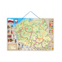 Woody Magnetická mapa Polska s obrázky a společenská hra 3v1
