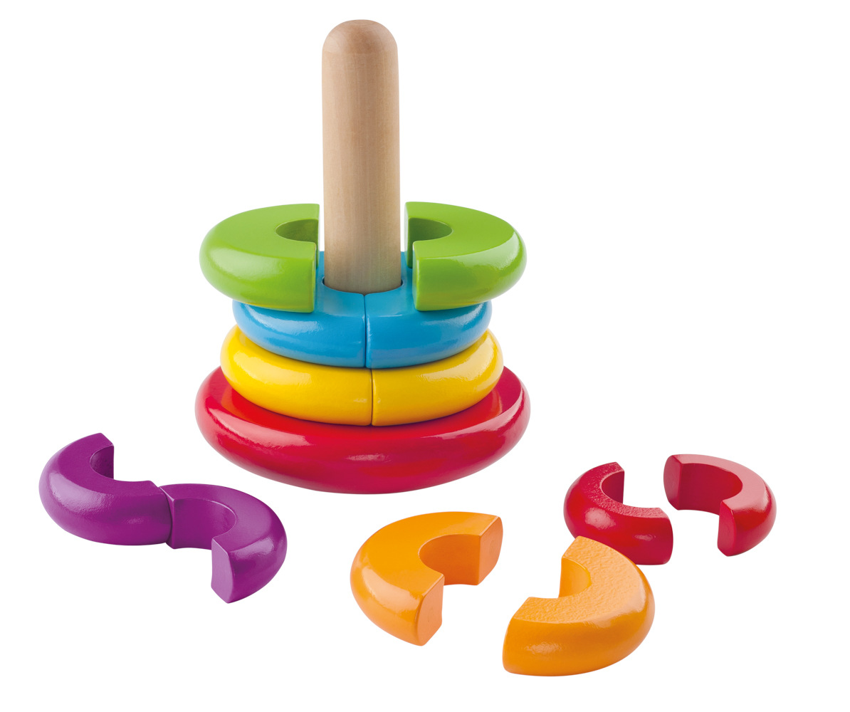 Úkolem dítěte je navléknout kroužky od největšího k nejmenšímu. K tomu je každý navlékací kroužek je tvořen dvěma půlkruhy spojenými silným magnetem. Dítě si musí nejprve půlkruhy spojit a pak je navléknout na tyčku. | Věk: 2+, Rozměr: 13 x 17 cm | Správná hračka roku 2009Více