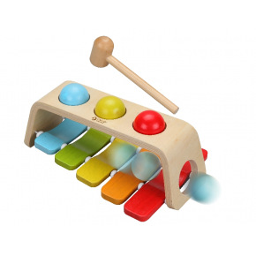 Xylofon patří mezi bicí nástroje. Jeho kovové plátky jsou usazeny na filcových kroužcích, které regulují ostrost zvuku. Dřevěný rám i paličky propůjčují zvuku hloubku a sametovový tón. Věk: 3+ | Rozměr: 25,5 cm
