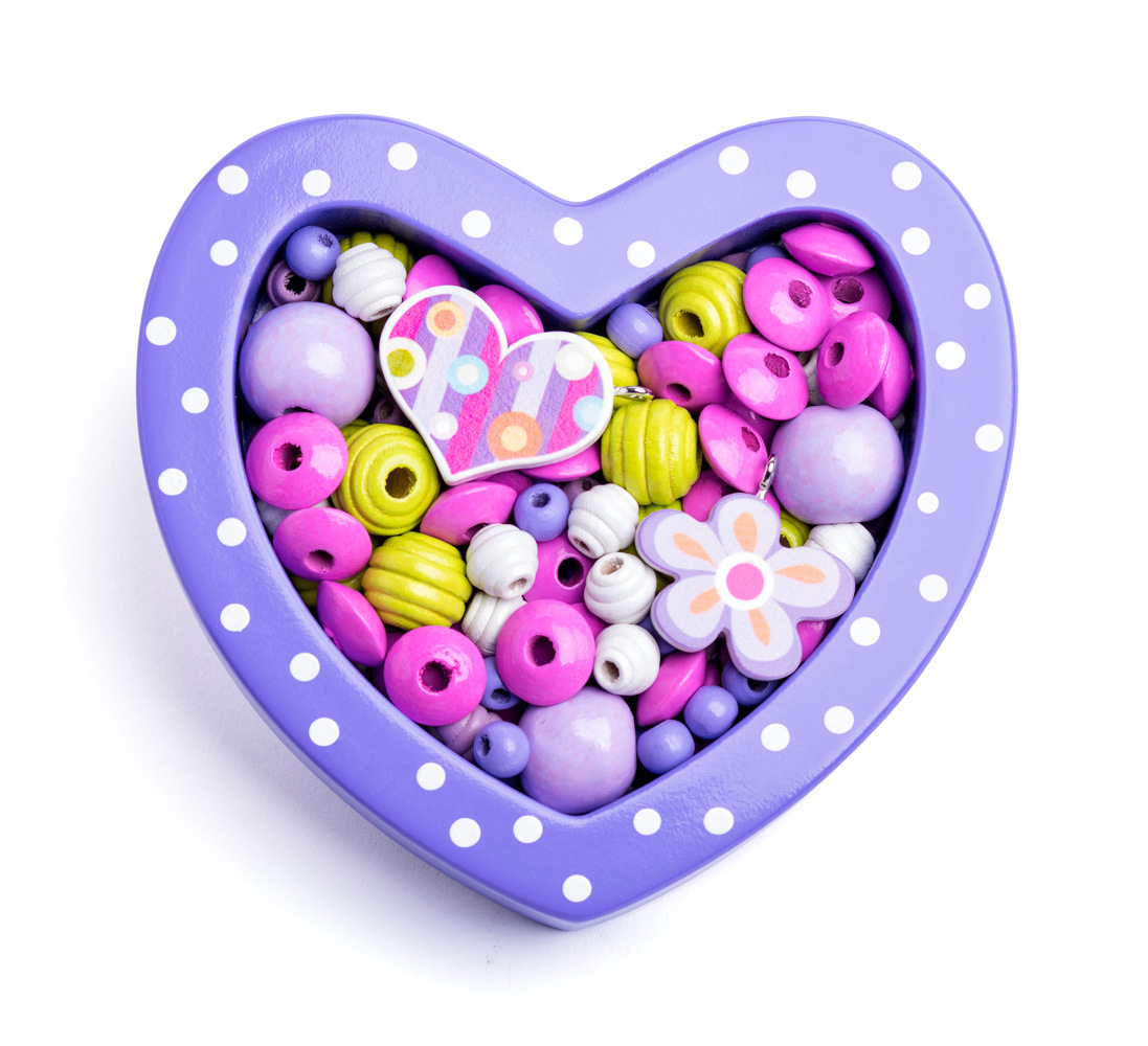 Woody Navlékací korálky - Malé srdíčko fialové
