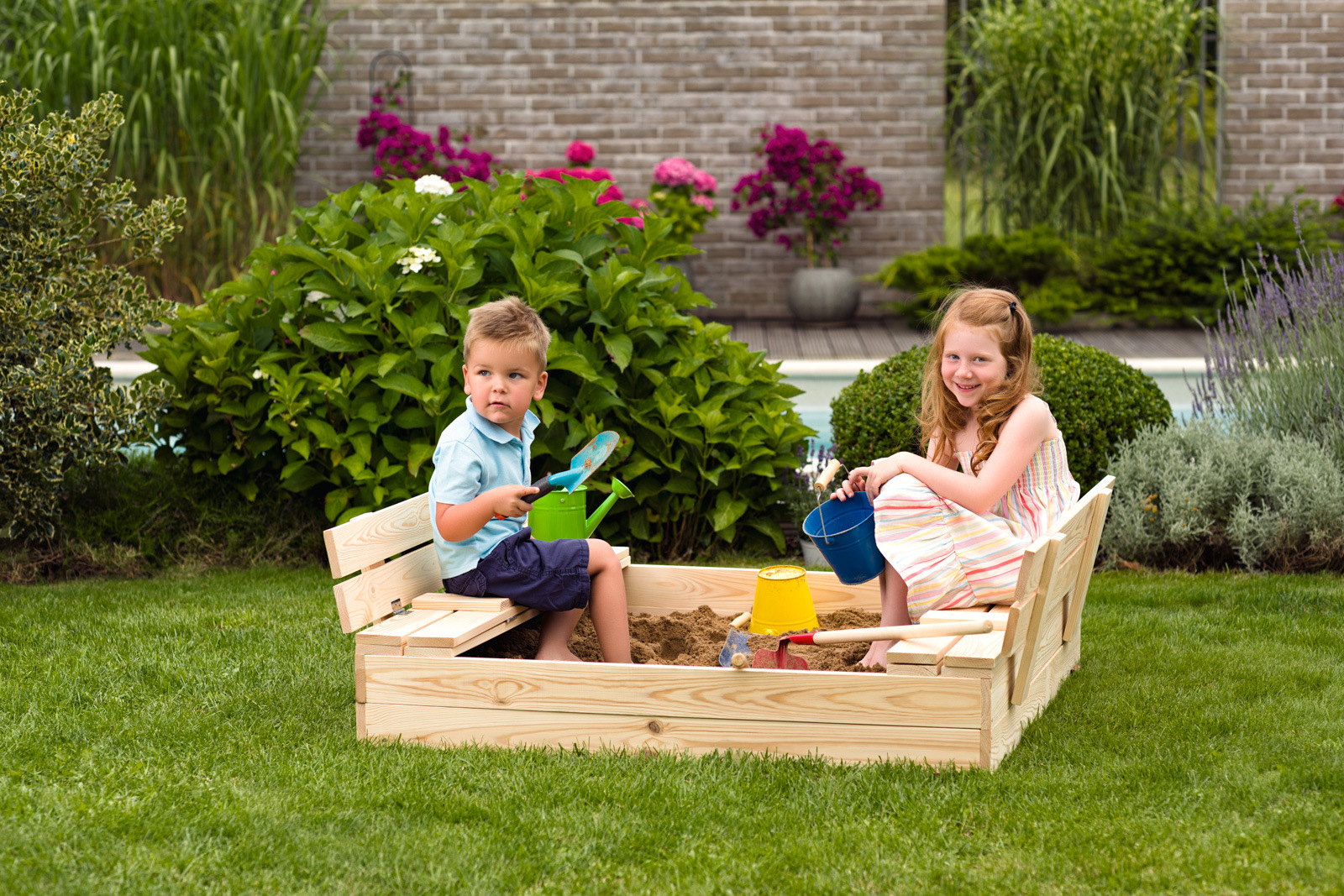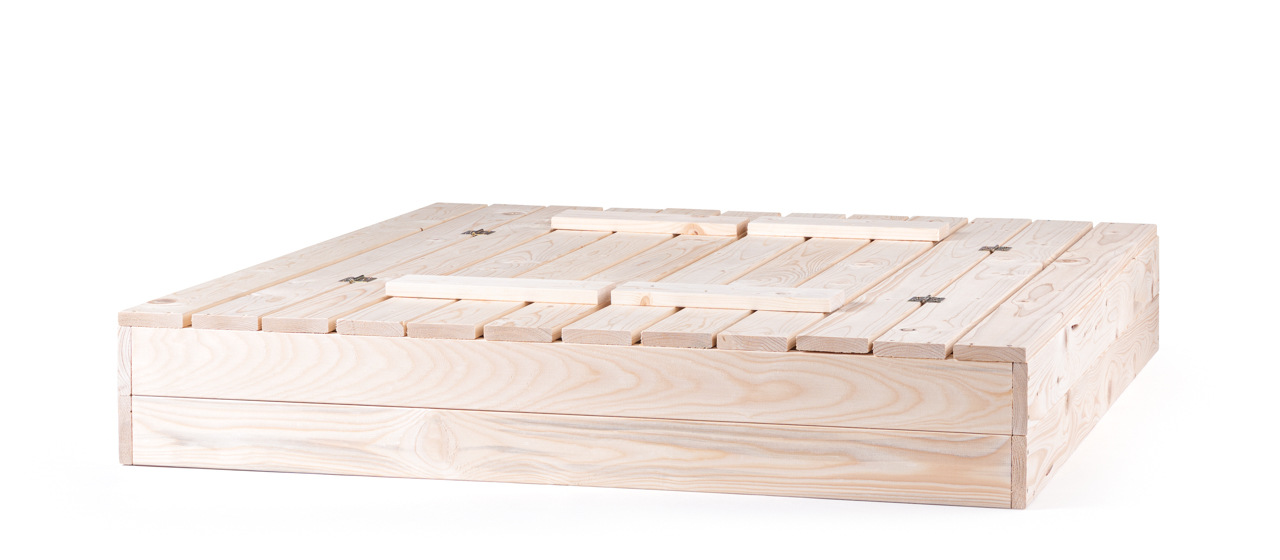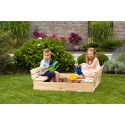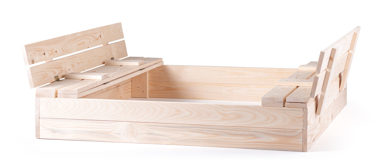 Pískoviště z masivního dřeva je vybaveno víkem, které chrání písek před zvířaty, spadaným listím a jinými nečistotami v době, kdy si v něm děti nehrají. Pokud si děti na pískovišti zrovna hrají, je víko otevřeno a promění se v lavičky, které umožní pohodlné sezení při hře.| Rozměr: 120 x 113 x 19 cm | Rozměr rozložená výška s lavičkou: 120 x 113 x 39 cm / Věk: 3+