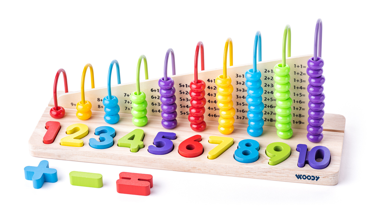 Na každé drátěné konstrukci počítadla je přesně tolik korálků, kolik znázorňuje číslice pod ním. Dítě tak může trénovat jednotlivé matematické úlohy, které vidí napsané na střední dělící příčce. Počet dílků: 13. Rozměr: 34 x 11,5 x 15,2 cm. Rozměr balení: 34,5 x 12 x 16,5 cm. Věk: 3+