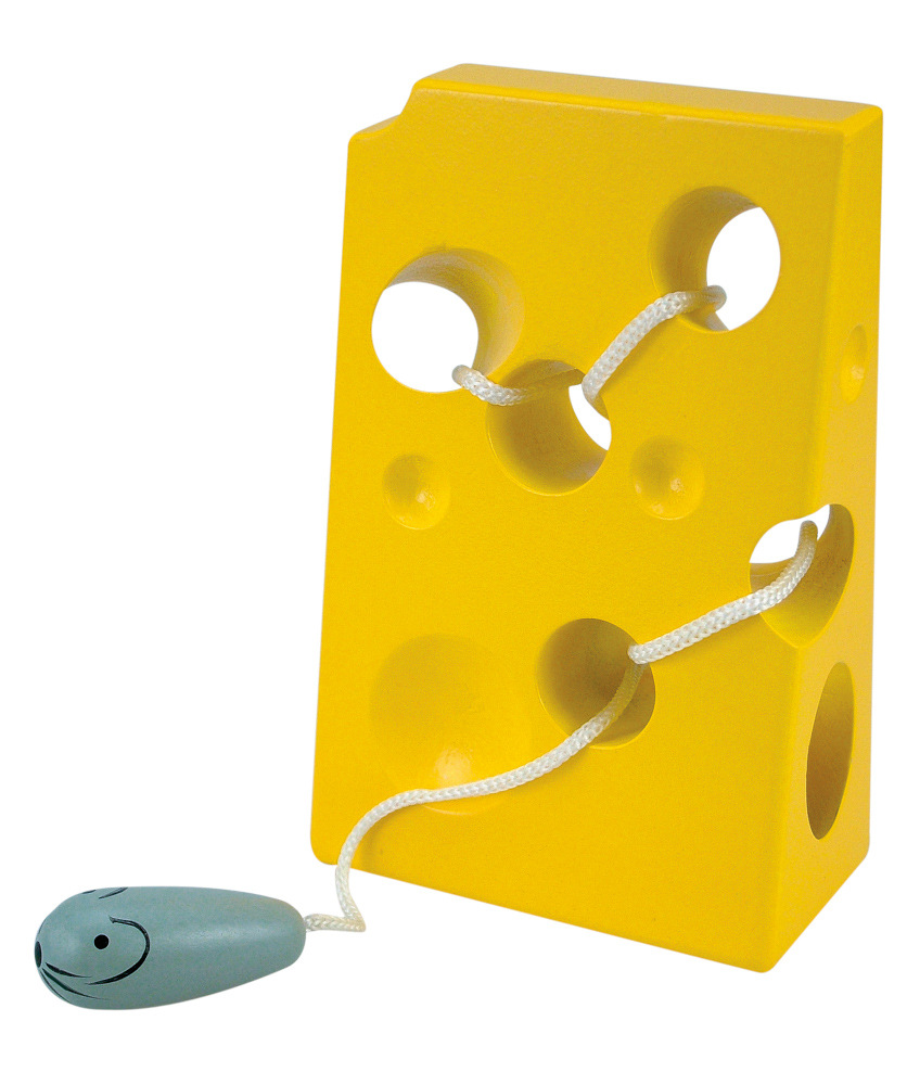 Motorická hra pro nejmenší . Dítě provléká myšku uchycenou na šňůrce děravým sýrem a tím cíleně cvičí jemnou motoriku. | Věk: 3+| Rozměr: 13,5 x 8,5 x 5 cmVíce