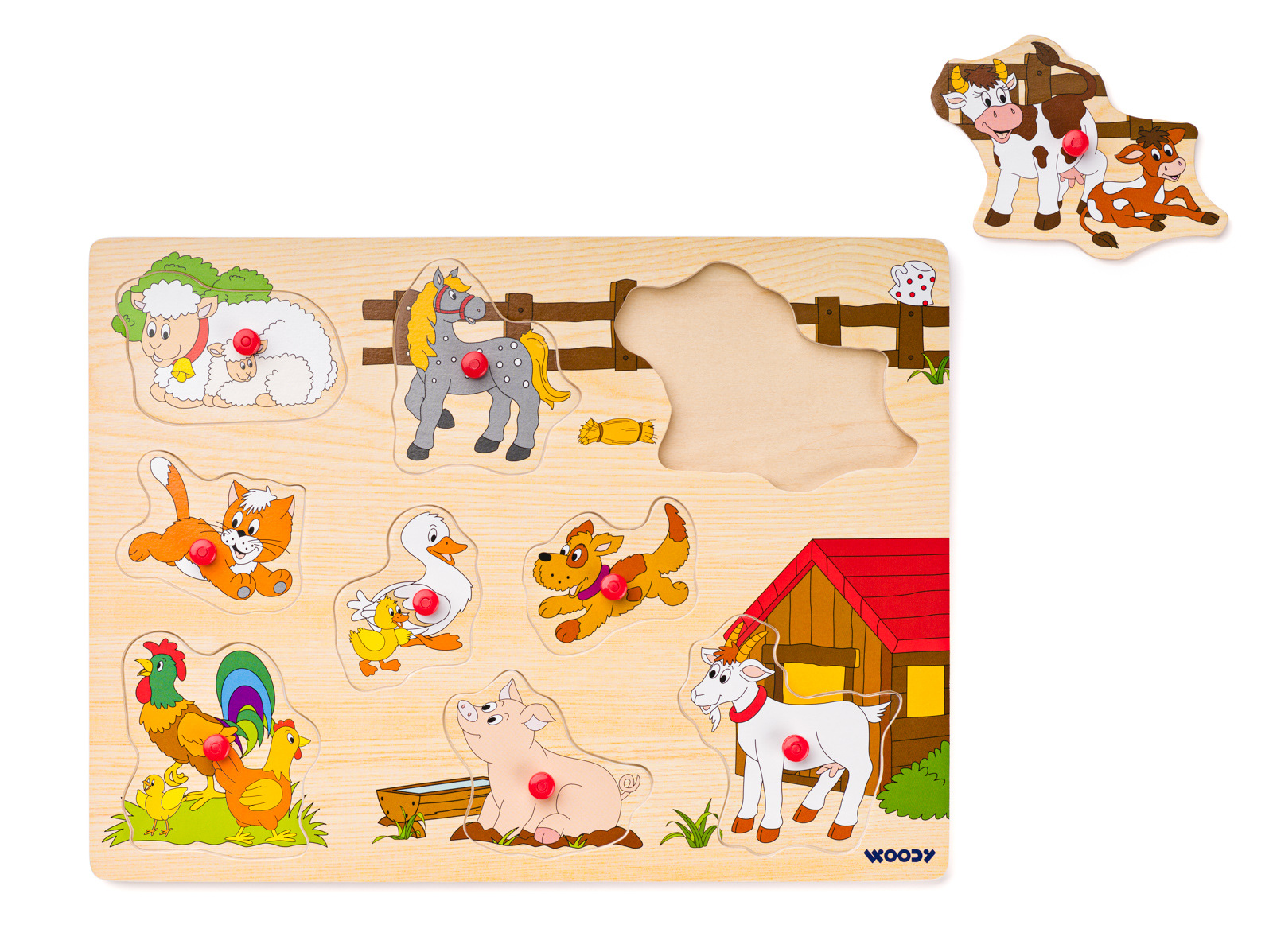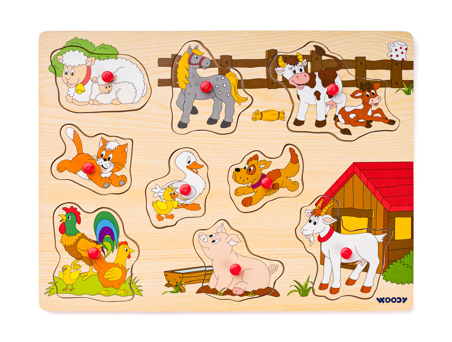Masivní puzzle pro nejmenší děti je složeno z pěti velkých kousků, které se dají snadno uchopit. Na základně hrací desky vytištěna černobílá kresba, která usnadní orientaci a správné poskládání obrázku. Design pochází z dílny českého výtvarníka.| Rozměr: 15 x15 x 1,5 cm | Věk: 1+