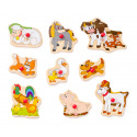 S touto kouzelnou magnetickou skládačkou si můžete vytvořit svou vlastní farmu. Otevřete dřevěnou krabičku plnou magnetických zvířátek, lidiček, domečků a dalších prvků s motivem farmaření. Každý motiv se navíc musí poskládat z více částí. Dítě je umisťuje na magnetické víko s obrázkem statku a louky. Inspiruj se přiloženými kartičkami s předlohou. Z druhé strany magnetického víka se nachází plocha na malování. Malovat můžete přiloženým mazacím fixem, který je zároveň vybaven houbičkou. Malujte znovu a znovu. Magnetické tvary lze přiložit z obou stran magnetického víka. Celá sada je uložená v dřevěné krabičce, která má zavírání opatřeno pevnou gumičkou. Můžete tak sadu s sebou vzít pohodlně i na cesty. Hra rozvíjí dětskou kreativitu a jemnou motoriku. Obsah sady: 55 magnetických tvarů, 8 kartiček s inspirací a mazací fix s houbičkou. Rozměry balení: 20 x 27 x 4 cm. Věk: 3+