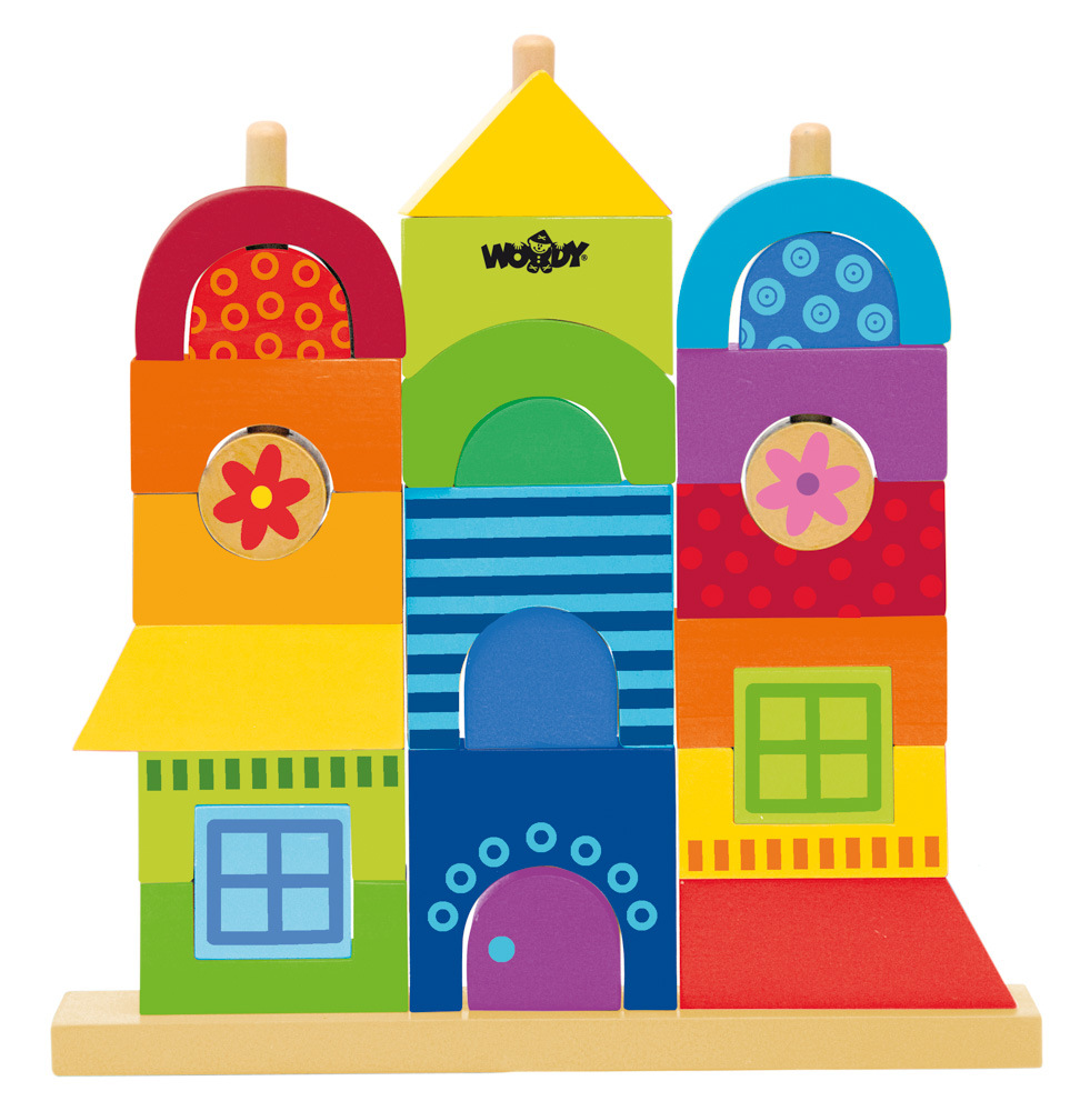 Navlékej na tyčky tyto speciální kostky různých tvarů a barev a vytvoř z nich originální veselý domeček. Vhodné k procvičování motoriky a logiky. Obsahuje 27 dílů.| Věk: 2+ | Rozměr: 26 x 23 x 5 cmVíce