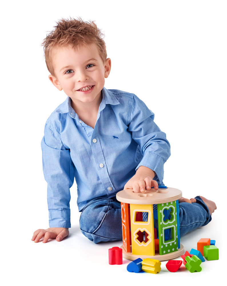 Dítě vkládá barevné tvary do příslušných otvorů. Hračka podporuje rozvoj jemné motoriky a dítě se učí poznávat geometrické tvary. | Počet ks: 20 | Věk: 2+ | Rozměr: 19 x 19 x 11,6cm |