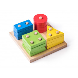 Věk: 2+. 15 x 14,5 x 7 cm. Logická hra pro nejmenší, kde je úkolem dítěte, podle tvaru, barvy a počtu kolíků, navléknout a umístit destičku na správné místo. Obsahuje 16 dílů. Video: https://www.youtube.com/watch?v=GYKiWVvzoyEVíce