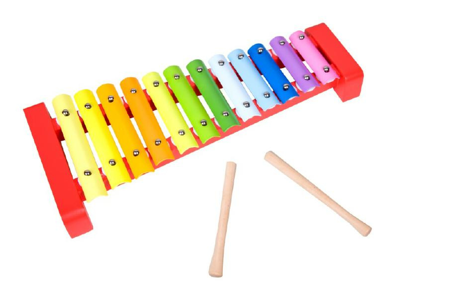 Xylofon patří mezi bicí nástroje. Jeho kovové plátky jsou usazeny na filcových kroužcích, které regulují ostrost zvuku. Dřevěný rám i paličky propůjčují zvuku hloubku a sametovový tón. Věk: 3+ | Rozměr: 25,5 cm