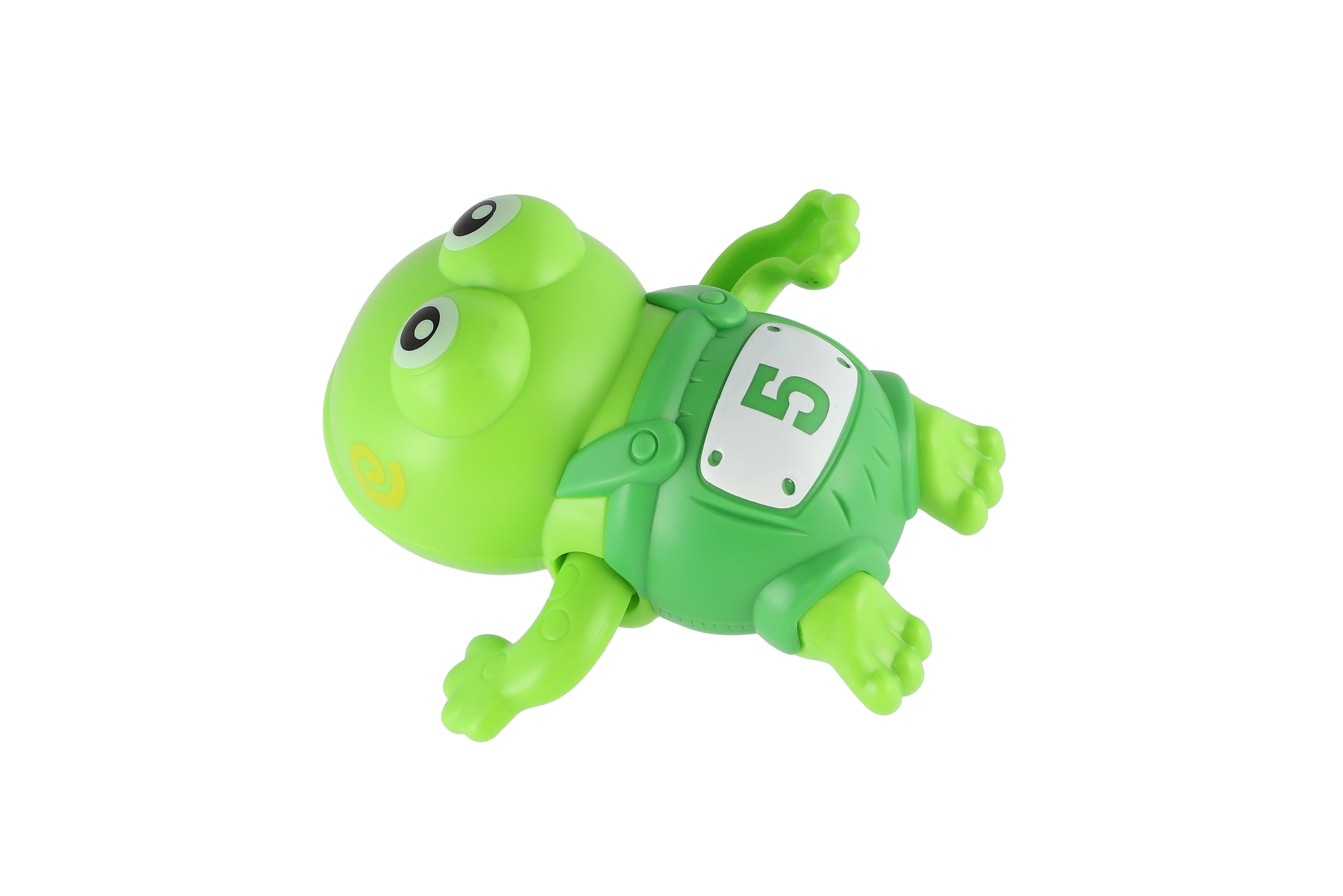 Rozveselte koupání s naší natahovací žábou do vody! Tato veselá žába je perfektní společník pro děti při každé koupeli. Stačí ji natáhnout a sledovat, jak plave po hladině. Ideální pro zábavu ve vaně, bazénu nebo i v jezírku. Velikost žáby: 10 cm Vhodné pro děti od 18 měsíců.