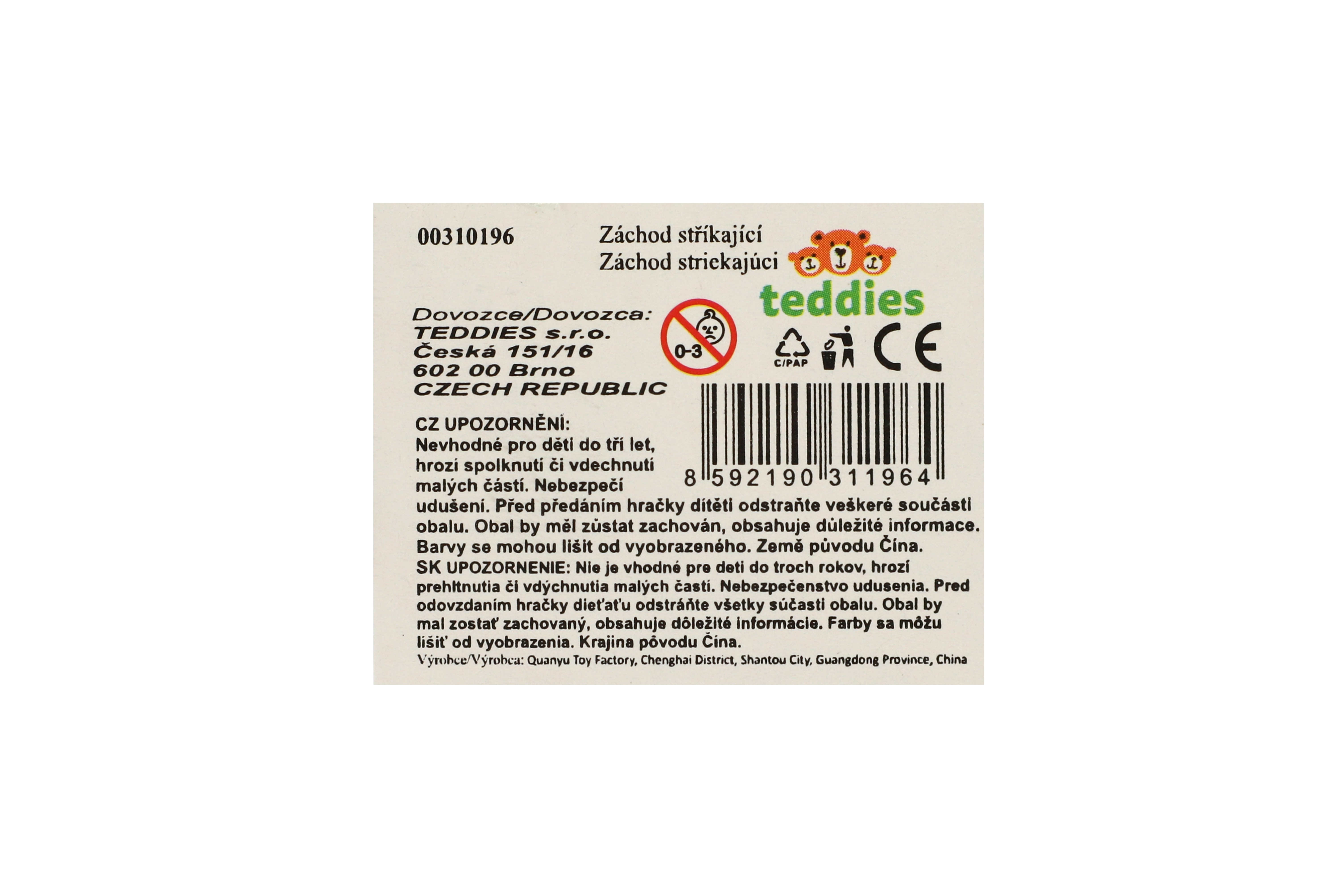Teddies Záchod stříkací plast 6x10cm 4 barvy