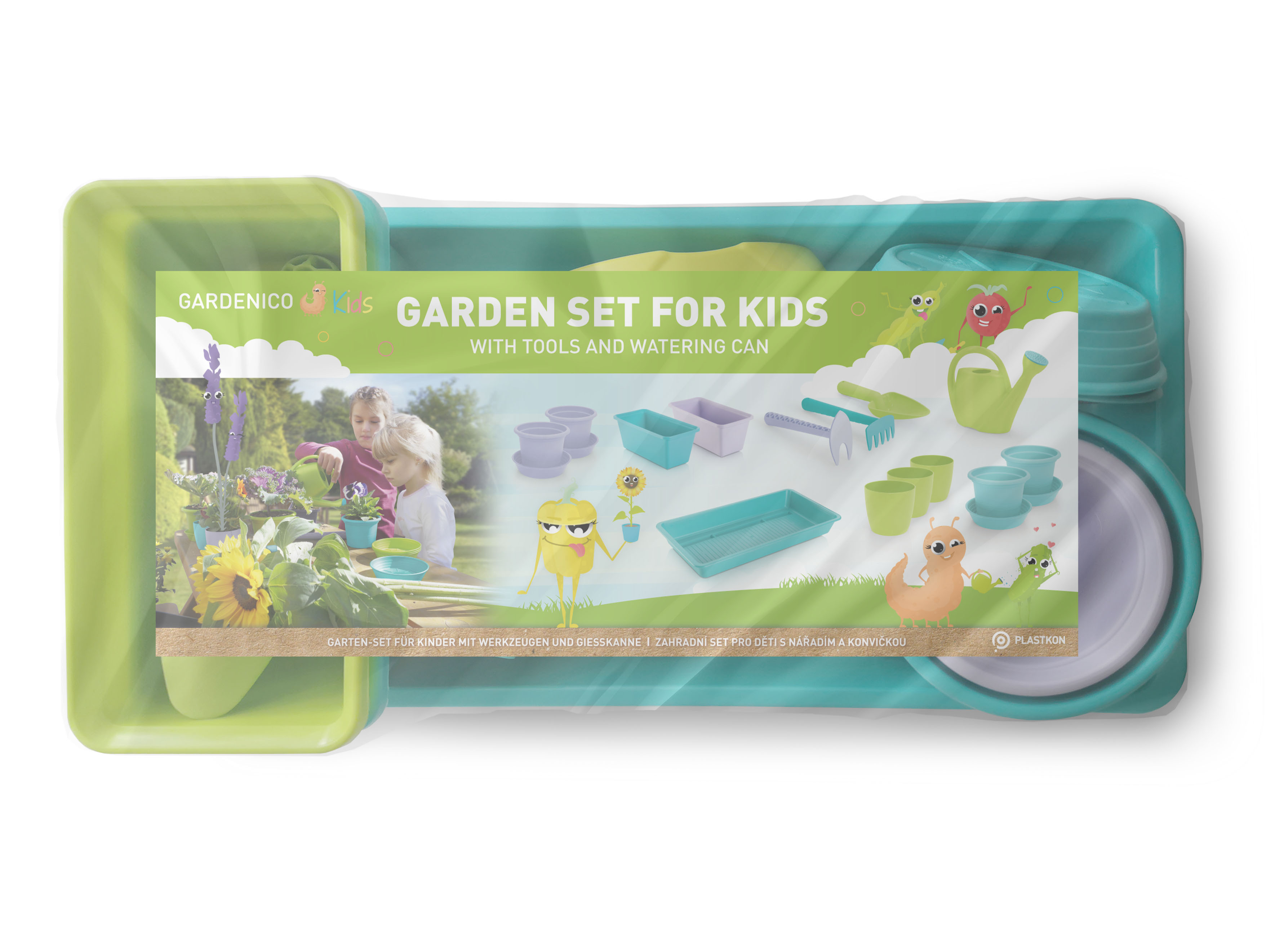 Zahradní set pro děti s nářadím a konvičkou plast ve fólii 40x20x11cm