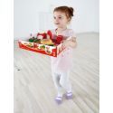 Najděte si dokonalé místo, vybalte vše z košíku a připravte si lahodný piknik! Sada obsahuje jeden látkový koš, jednu piknikovou deku, tři lahve s nápoji, dvě jahody, dva kousky chleba, jeden salátový list, jeden plátek rajčete a jeden kousek sýra na přípravu sendviče! Potraviny jsou vyrobeny z měkkého materiálu, díky čemuž jsou zábavné a snadno je uchopí i malé ručičky. Tato zábavná sada je ideální pro rozvoj hraní rolí, jazykových dovedností a lásky k pobytu venku. Rozměr balení: 28 x 25 x 18 cm. Věk: 18m+