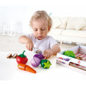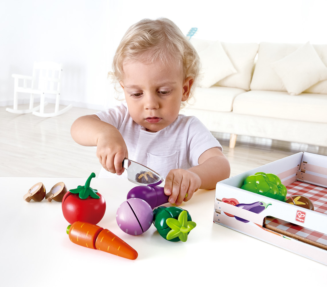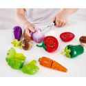 Sada s čerstvou zeleninou nadchne kluky i holčičky! Díky ukrytému suchému zipu je možné zeleninu pomocí přiloženého nože krájet a mít tak mnohem realističtější prožitek ze hry. Balení obsahuje 6 druhů ovoce a dřevěný nůž. Hračka rozvíjí dětskou fantazii a představivost. Rozvíjí jemnou motoriku a koordinaci očí a rukou. Vyrobeno z kvalitního a odolného dřeva. Věk: 3+. Rozměr: 20 x 6 x 26 cm.