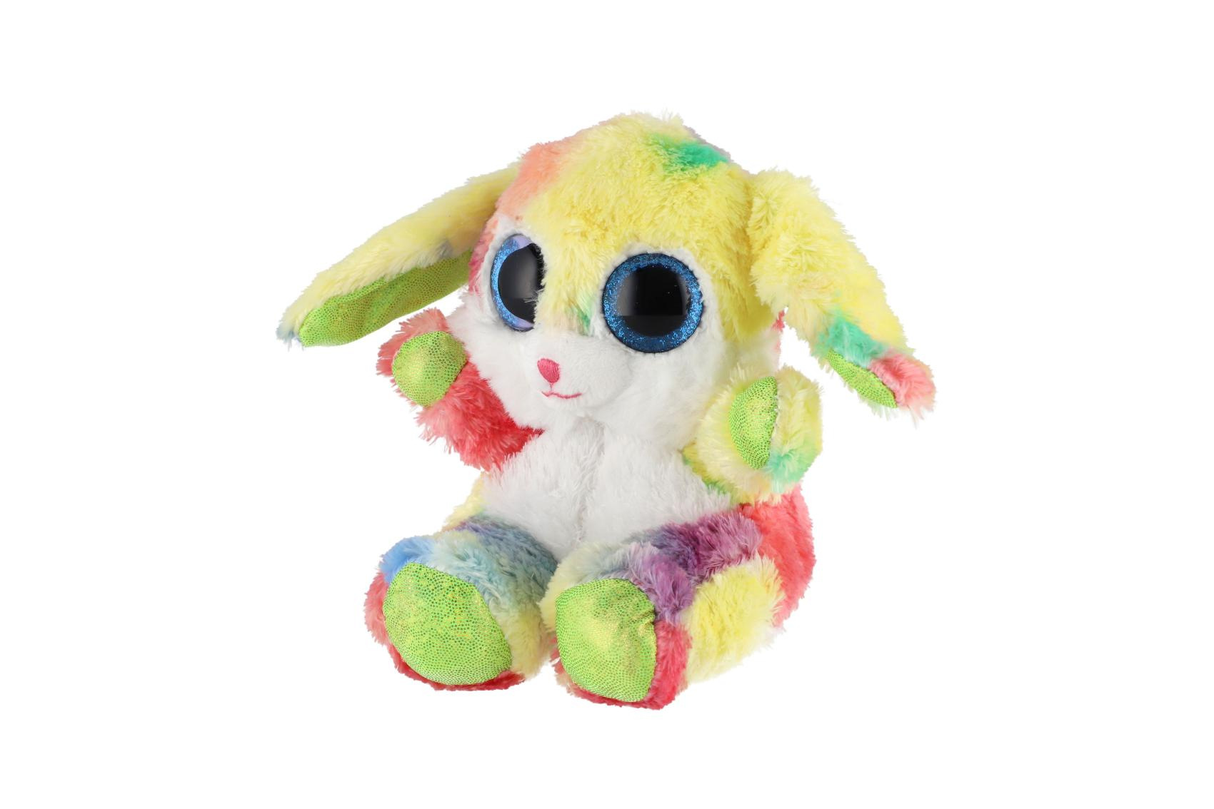 Rozkošný duhový zajíček s obrovskýma třpytivýma očima si okamžitě získá srdce každého milovníka plyšVíce