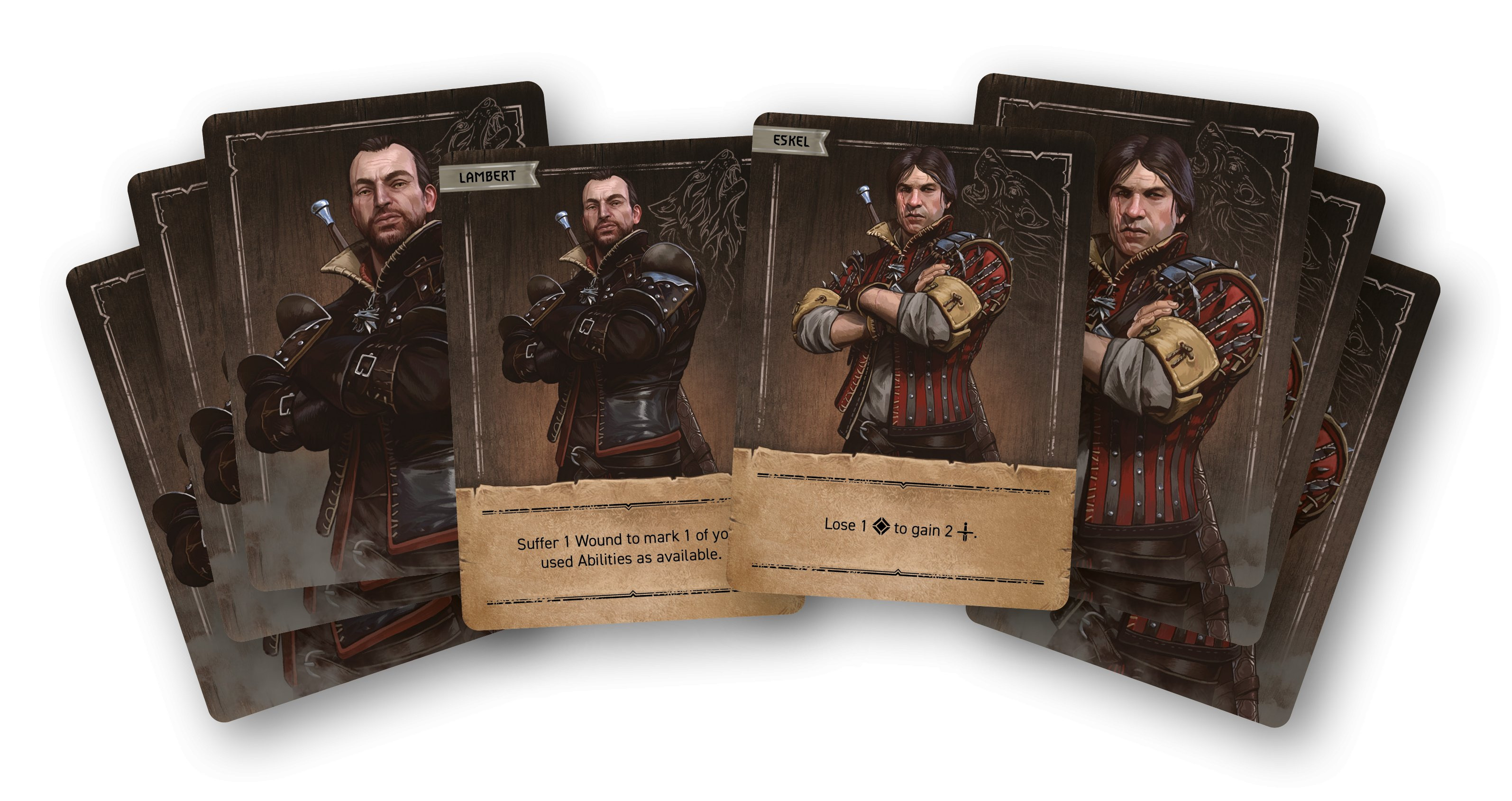 Poznejte 2 nové zaklínače! Do boje se zapojí dva zkušení zaklínači – Lambert a Eskel! Využijte ve svůj prospěch pravidlovou mechaniku pro společníky a také dovednosti zaklínačských adeptů v Kaer Morhen.