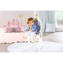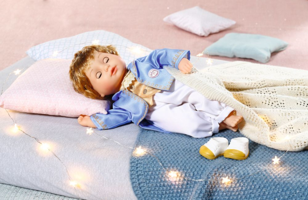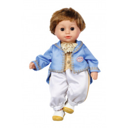 V krásném malém princi našla princezna Little Annabell konečně partnera na trénink královského valčíku. Panenka – chlapec velikosti 36 cm nosí zlato-bílé boty, které jsou to pravé na taneční parket. Bílé kalhoty jsou z boku potištěny zlatým proužkem. Horní část oblečení je 2v1: zlatá vesta s královsky modrým kabátkem a našitou krajkovou náprsenkou. Oblečení je ušito ve střihu „easy fit“ a jeho převlékání hravě zvládnou i nejmenší ručičky. Vysoce kvalitní vlásky na vinylové hlavičce vypadají vždy dokonale, bez ohledu na to, jak zapáleně princ tančí. Jakmile lekce tance skončí, princ si vždy rád zdřímne a sní o příštím plese na kouzelném zámku. Když se princ s látkovým tělíčkem položí na záda, zavře oči.