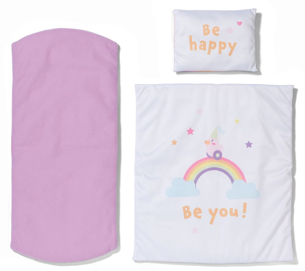 Usínání nebylo nikdy krásnější. Duhová postýlka BABY born se svým zasněným designem je zárukou sladkých snů. Kačenka Berta pomáhá hraním ukolébavky, když se veze po duze. Při tom svítí jako noční světýlko. Oboustranné lůžkoviny s barevným nebo jemným designem jsou ideální pro zachumlaní. Samotnou duhovou postýlku lze také ozdobit pomocí samolepek z archu, který je součástí balení. Pssst! Pod matrací je tajná přihrádka na malé poklady. A teď už do postýlky, milá BABY born!