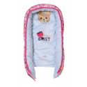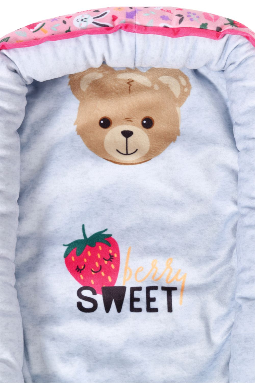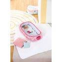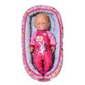 BABY born tiše leží ve svém hnízdečku a užívá si pohodlí. Barevné hnízdečko v hravém designu s obrázVíce