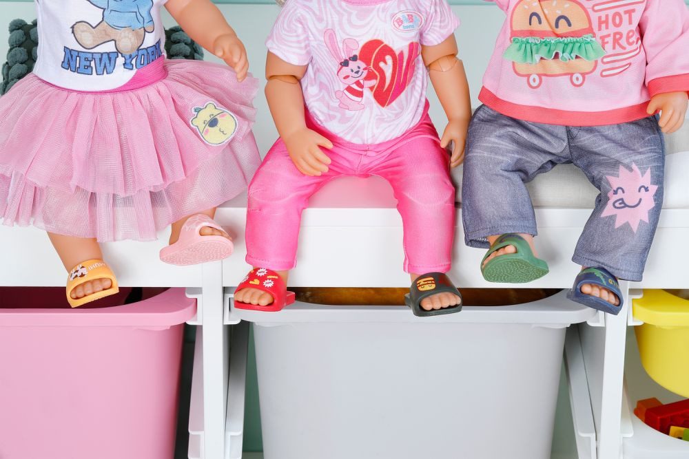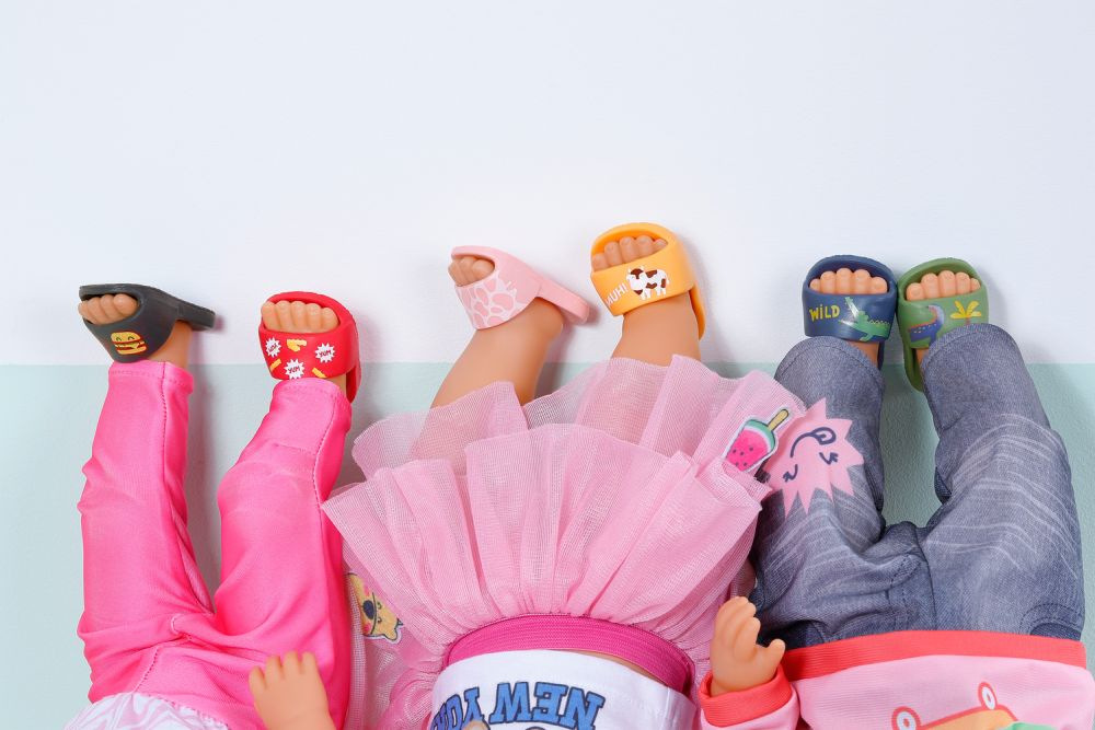 S těmito barevnými pantofli může BABY born vesele procházet teplými letními dny.