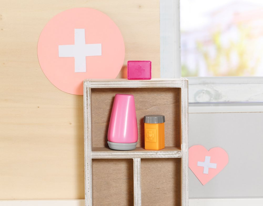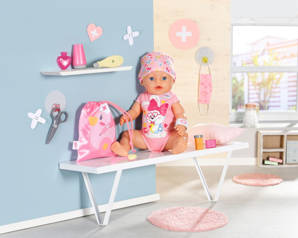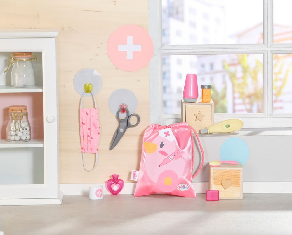 BABY born Sada první pomoci obsahuje 9 zdravotnických potřeb v látkovém sáčku.