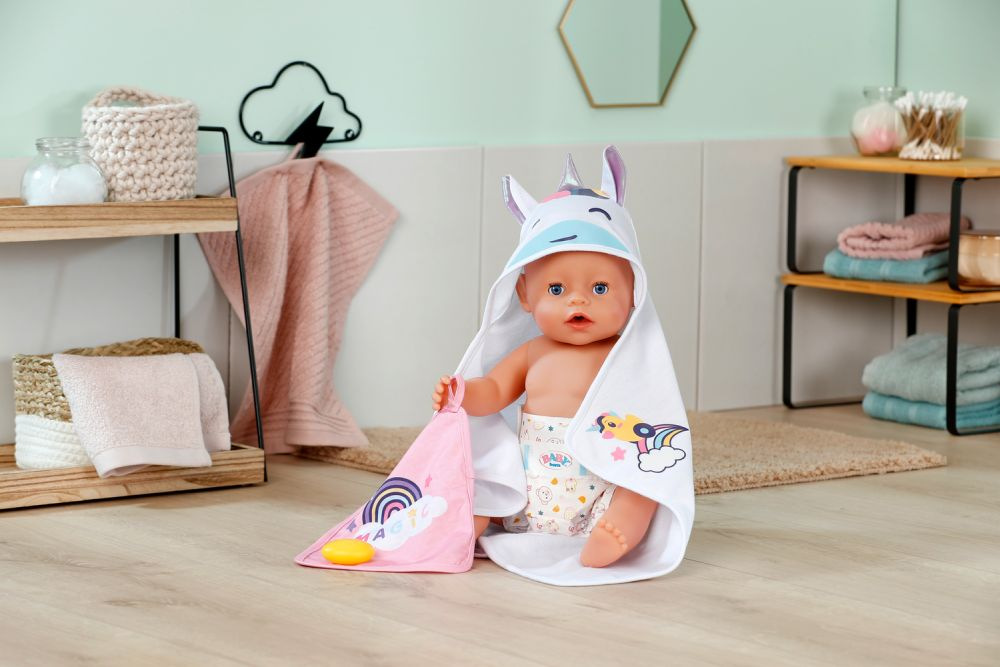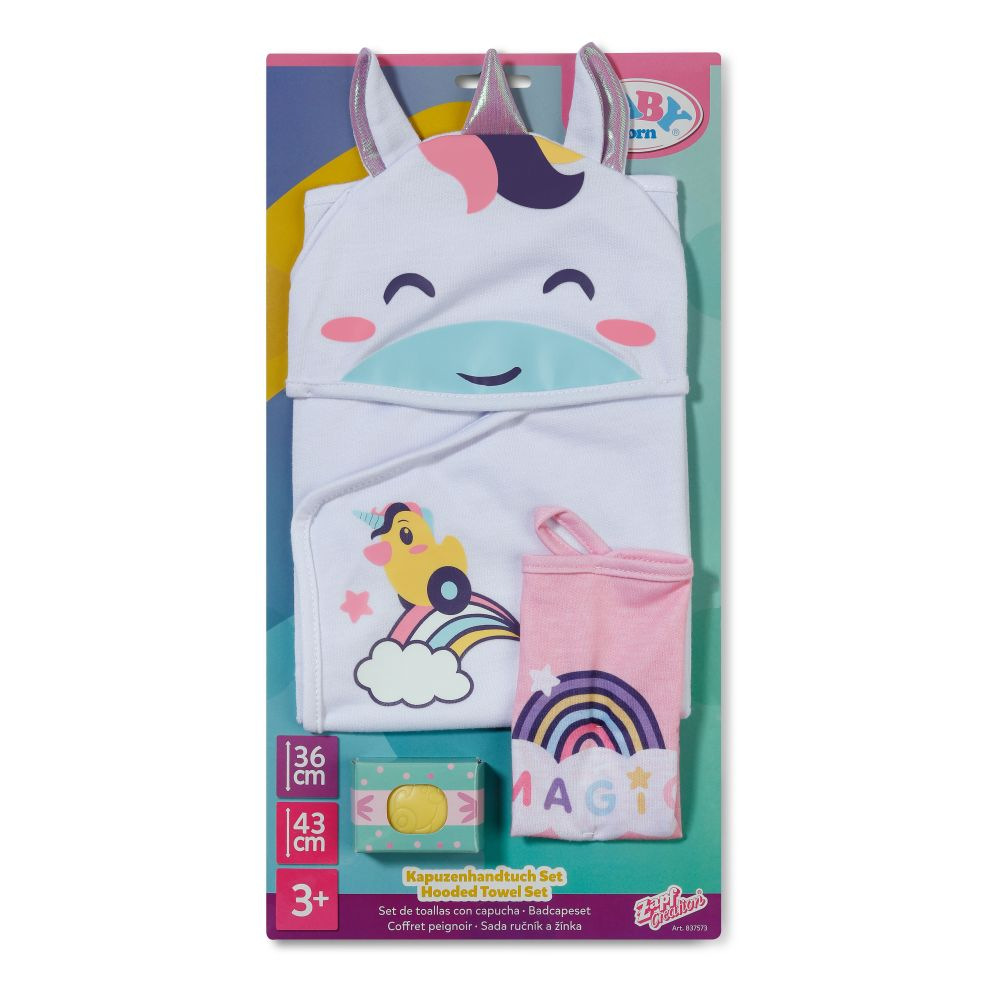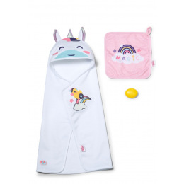 BABY born Sada ručníků s jednorožcem a duhou.• Dva ručníky s motivem jednorožce a duhy• Kapuce s pot