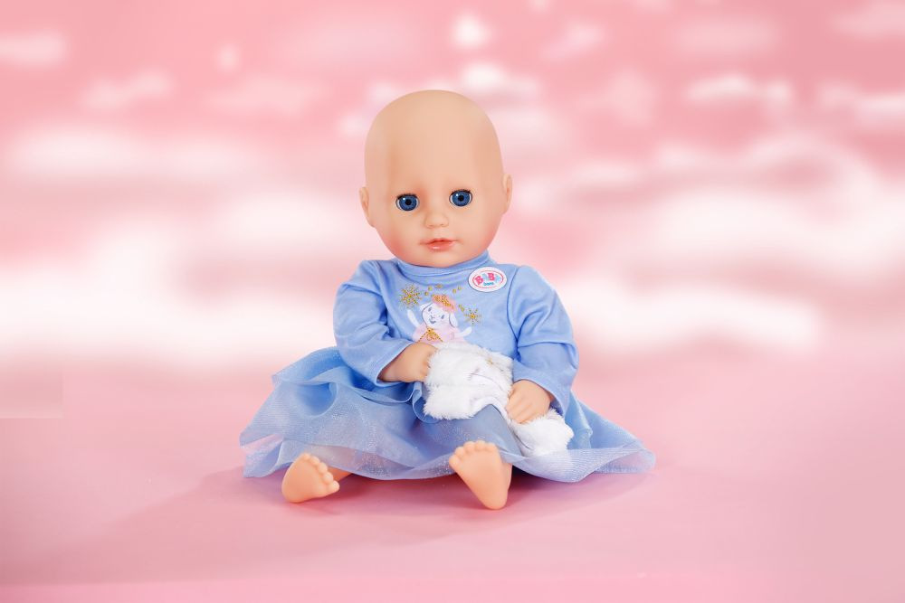 BABY born Zimní šaty s dlouhými rukávy, tylovou sukýnkou a plyšovou vestou pro panenky velikosti 36 cm. • Modré šatičky s dlouhými rukávy a tylovou sukýnkou • Plyšová vesta, která udrží panenku v teple • Vhodné pro všechny panenky velikosti 36 cm • Díky jednoduchému střihu zvládnou panenku obléknout i ti nejmenší • Hravé pastelové barvy