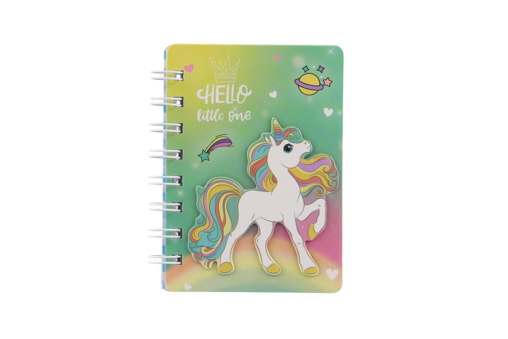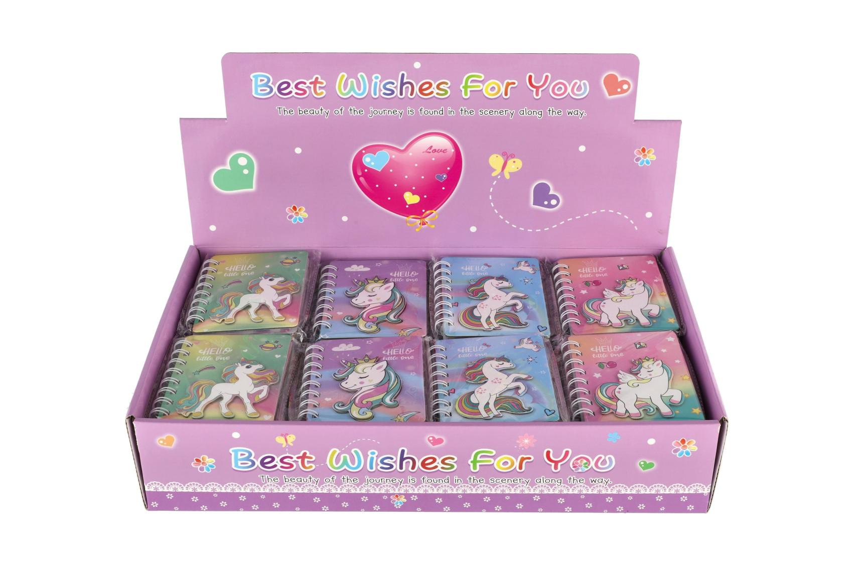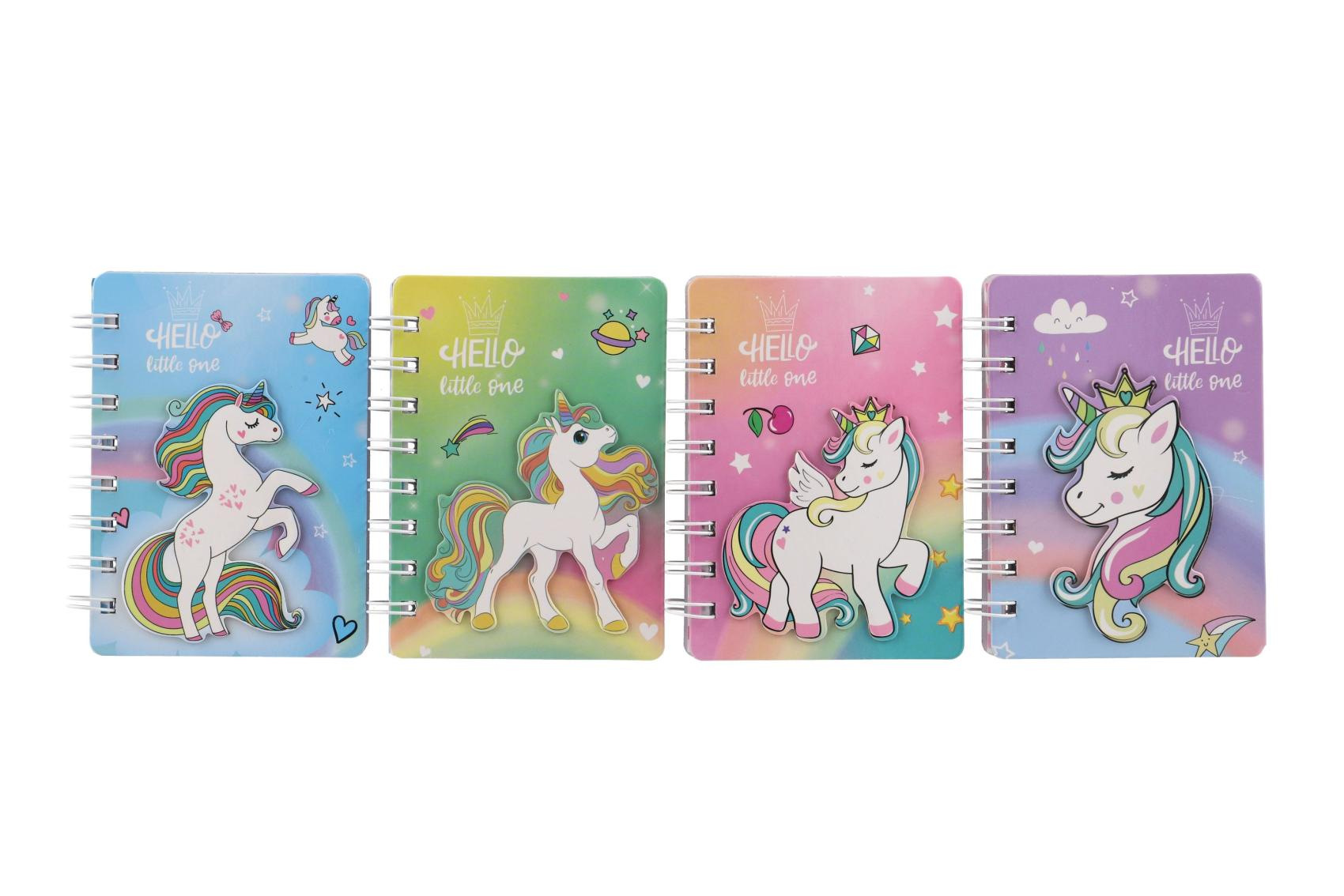 Popis Zápisník/blok jednorožec kroužkový 9,5x12cm 4 druhy v sáčku 50ks v boxu