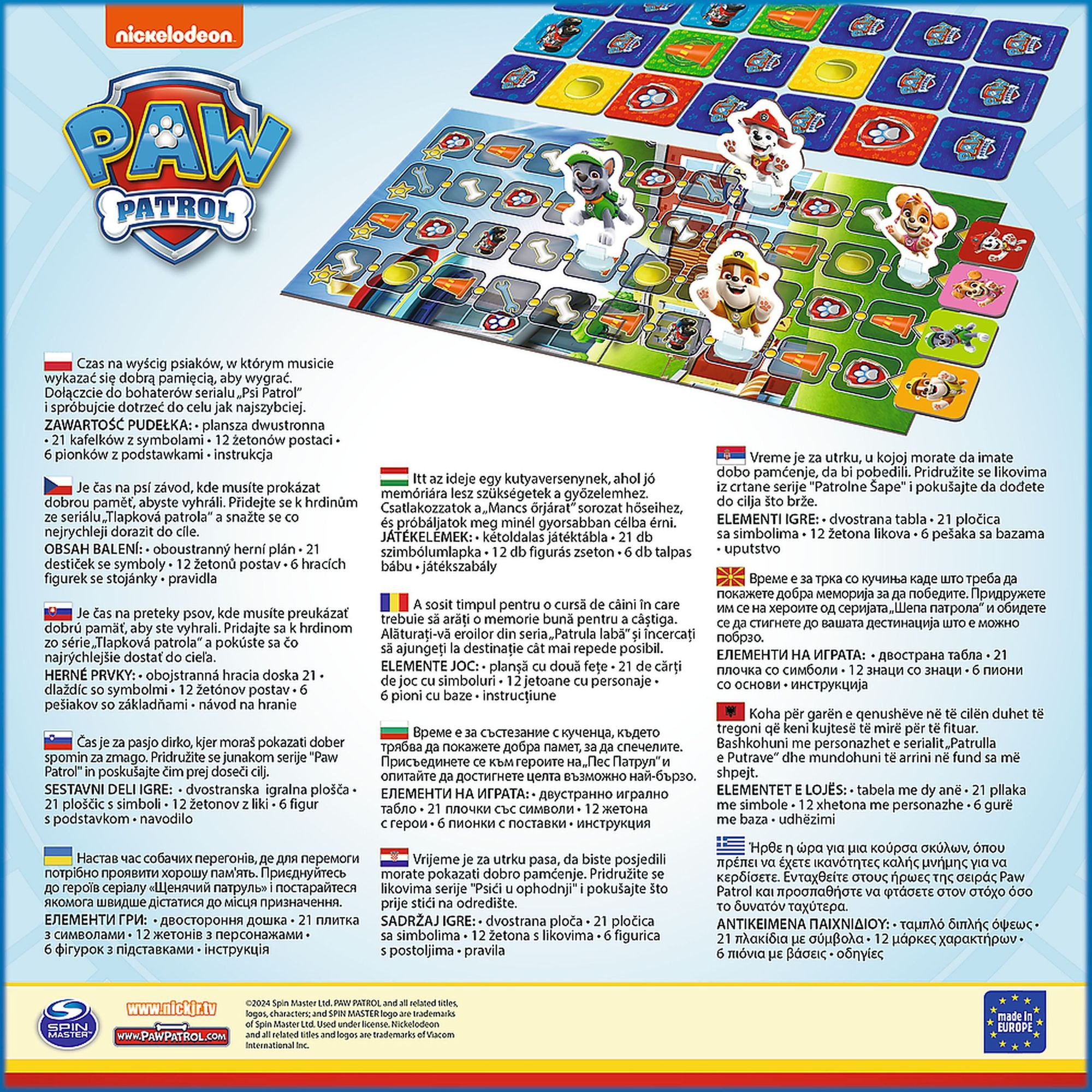 Je čas na psí závod, kde musíte prokázat dobrou paměť, abyste vyhráli. Přidejte se k hrdinům ze seriálu Tlapková patrola a snažte se co nejrychleji dorazit do cíle. Balení obsahuje: oboustranný herní plán, 221 destiček se symboly, 12 žetonů postav, 6 hracích figurek se stojánky a pravidla. Rozměr balení: 24,5 x 24,5 x 5 cm Vhodné od 4 let
