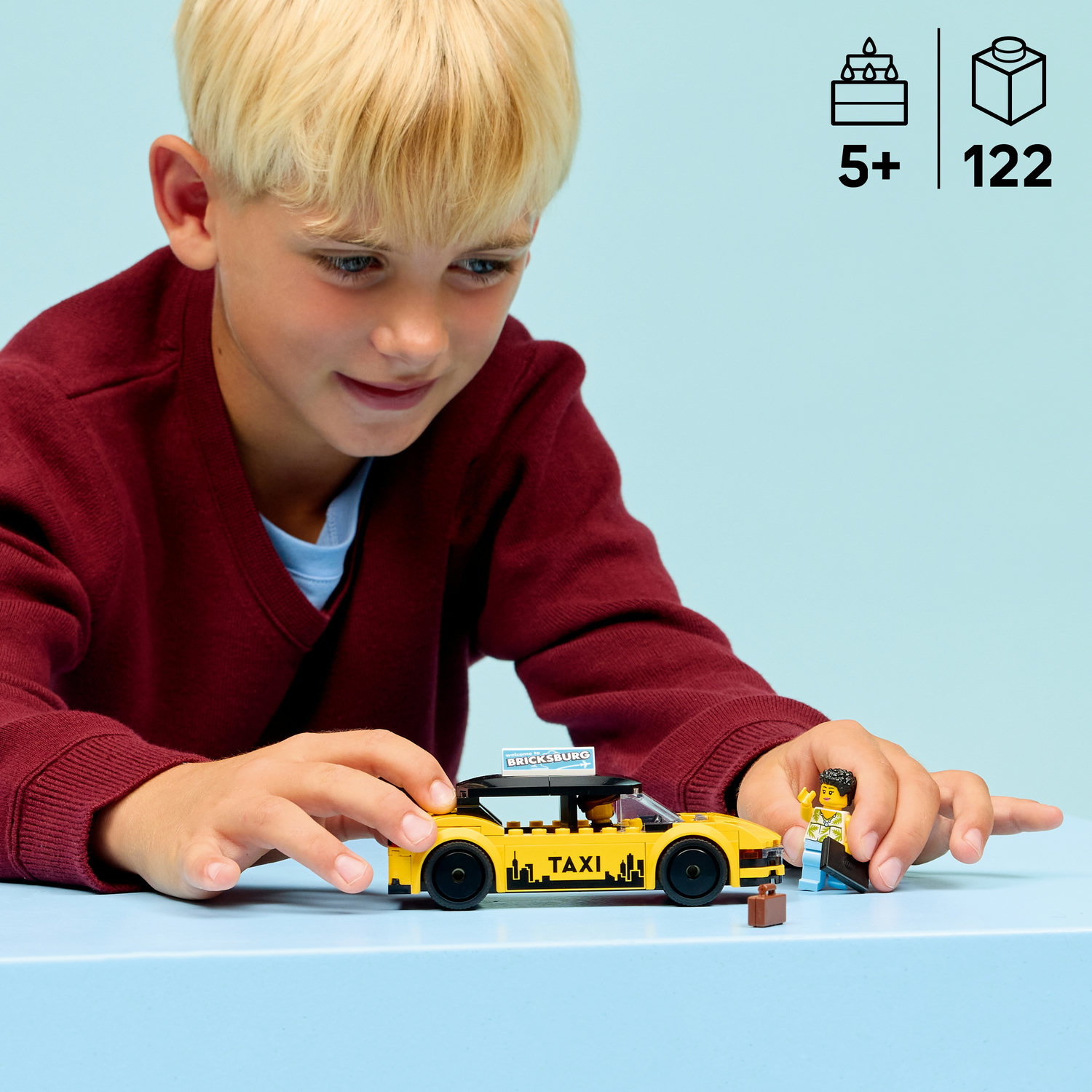 Děti od 5 let, které milují autíčka a stavebnice, si se stavebnicí LEGO® City Žlutý taxík (60487) užijí dvojnásobnou porci zábavy. Tato zábavná stavebnice obsahuje moderní elektrický žlutý taxík s otevíracím kufrem se zavazadly a kapotu, kterou lze zvednout a odhalit tak model elektrického motoru. Součástí modelu autíčka jsou potištěné samolepky včetně GPS obrazovky, loga taxi, reklamy na střeše a baterie. Děti můžou navíc odejmout střechu a vložit dovnitř minifigurky taxikáře a turistů, se kterými si užijí hraní a vymýšlení příběhů. Sestavitelné elektrické auto představuje skvělý dárek k narozeninám nebo jakékoli jiné příležitosti pro kluky i holky. Přidejte model k dalším stavebnicím z řady LEGO City (prodávají se samostatně) a zažijteještě více napínavých dobrodružství. Děti si užijí intuitivní stavění s aplikací LEGO Builder, která umožňuje přibližovat a otáčet model ve 3D a ukládat a sledovat postup stavění. Stavebnice obsahuje 122 dílků.