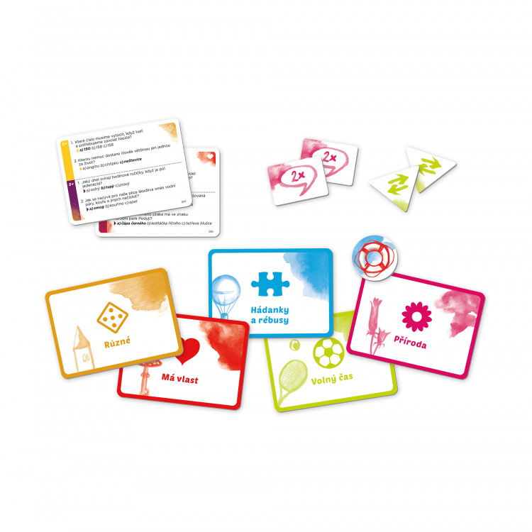 Ve hře najdete 2000 otázek rozdělených do pěti kategorií: Má vlast, Příroda, Volný čas, Různé, Hádanky a rébusy. Otázky mají dvě úrovně obtížnosti rozdělené dle věku hráčů, mohou si tedy společně zahrát prvňáci starší děti.