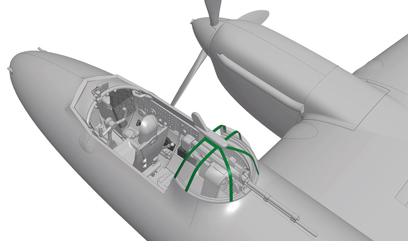 Model letadla ke slepení. Velikost: 1:48; 25,7 cm. Balení obsahuje: 435 dílků ke slepení.