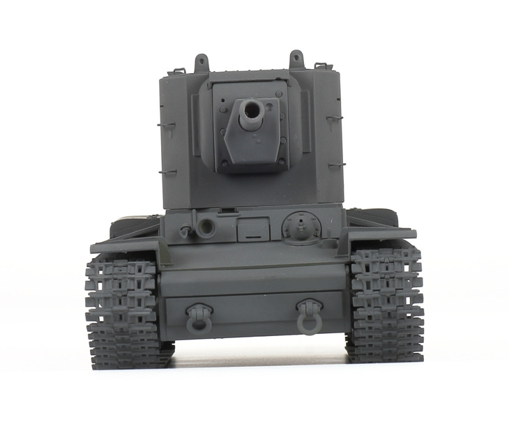 Informace o originálu: 76 mm dělo L-11 instalované na tanky KV se ukázalo jako příliš slabé pro útoky na kulometná hnízda i jiná opevnění. Nový tank KV-2 tak dostal jako hlavní výzbroj dělové věže 152 mm houfnici M-10 a byl mnohem účinnější při plnění jeho primárního úkolu, kterým bylo právě ničení obranných vojenských opevnění. Výroba KV-2 byla zahájena v roce 1940. Brzy po začátku druhé světové války na ruském území však byla jeho produkce postupně zastavována, neboť tento jednoúčelový tank se pro drsné podmínky úvodních fází války ukázal jako přemrštěný luxus.