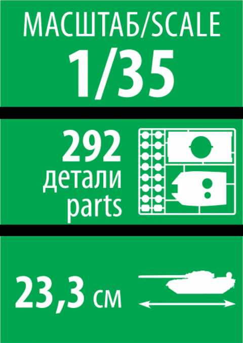 Model tanku ke slepení. Velikost: 1:35; 23 cm. Počet dílků: 292.