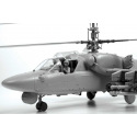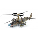 Informace o modelu: Ruský dvoumístný průzkumný a útočný vrtulník Ka-52 Aligator je dalším vývojem jednomístného Ka-50 Black Shark. Přidání druhého člena posádky - navigátora-operátora zbraní - rozšířilo možnosti použití vrtulníku. Prototyp Ka-52 uskutečnil svůj první let v roce 1997 a v roce 2011 byly ruskému armádnímu letectvu dodány první sériové stroje. K ničení pozemních cílů je vrtulník vyzbrojen 30mm automatickým kanónem 2A42, 80, 122 a 240mm neřízenými raketami a může nést bomby, kanónové kontejnery a další zbraně o hmotnosti až 2 tuny. Kromě toho je Ka-52 schopen používat protitankové střely Vikhr s laserovými naváděcími hlavicemi a ničit nepřátelské letouny raketami vzduch-vzduch Igla-V.