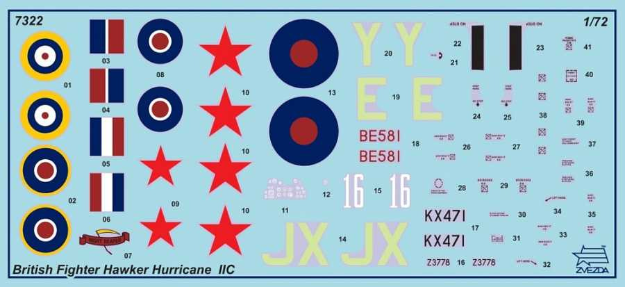 Popis Zvezda Snap Kit letadlo 7322 - Hawker Hurricane Mk II C (1:72)