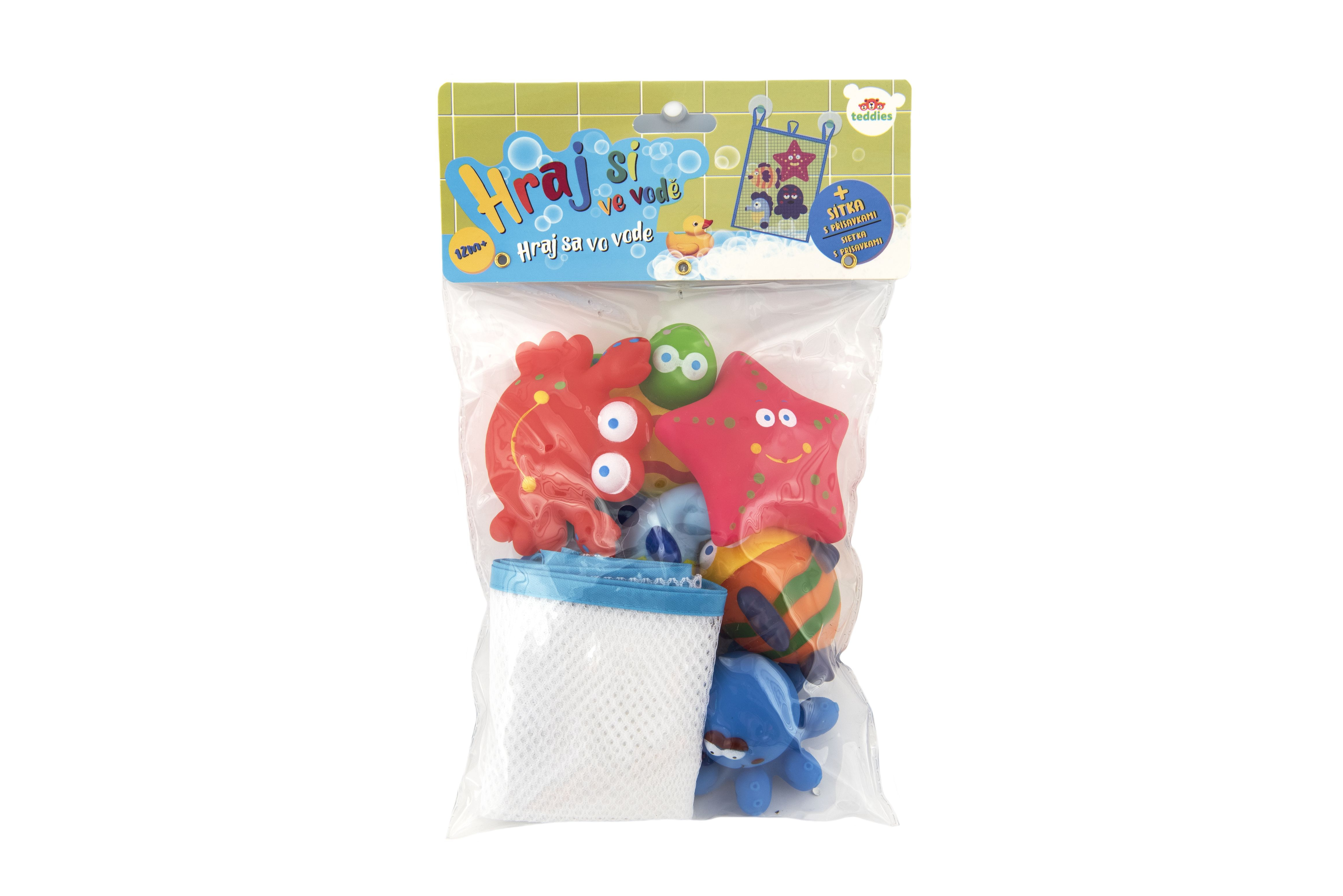 Zvířátka do vany gumová 6ks se síťkou v sáčku 18x28x5cm 12m+
