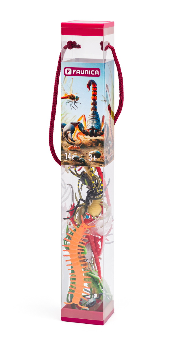 Tuba plná hmyzáků, broučků a členovců všecho druhu, z nichž některé děti dobře znají a jiné mohou takto blíže poznat. Lekne se mamka pavouka z této tuby, když jí ho dám na židli :-)? Obsahuje 14 figurek: 3 pavouky, mravence, mouchu, 2 vážky, kudlanku, zelenou kobylku, švába, stonožku, štíra, housenku a strašilku ostruhatou. | Věk: 3+ | Délka kudlanky: 10 cm