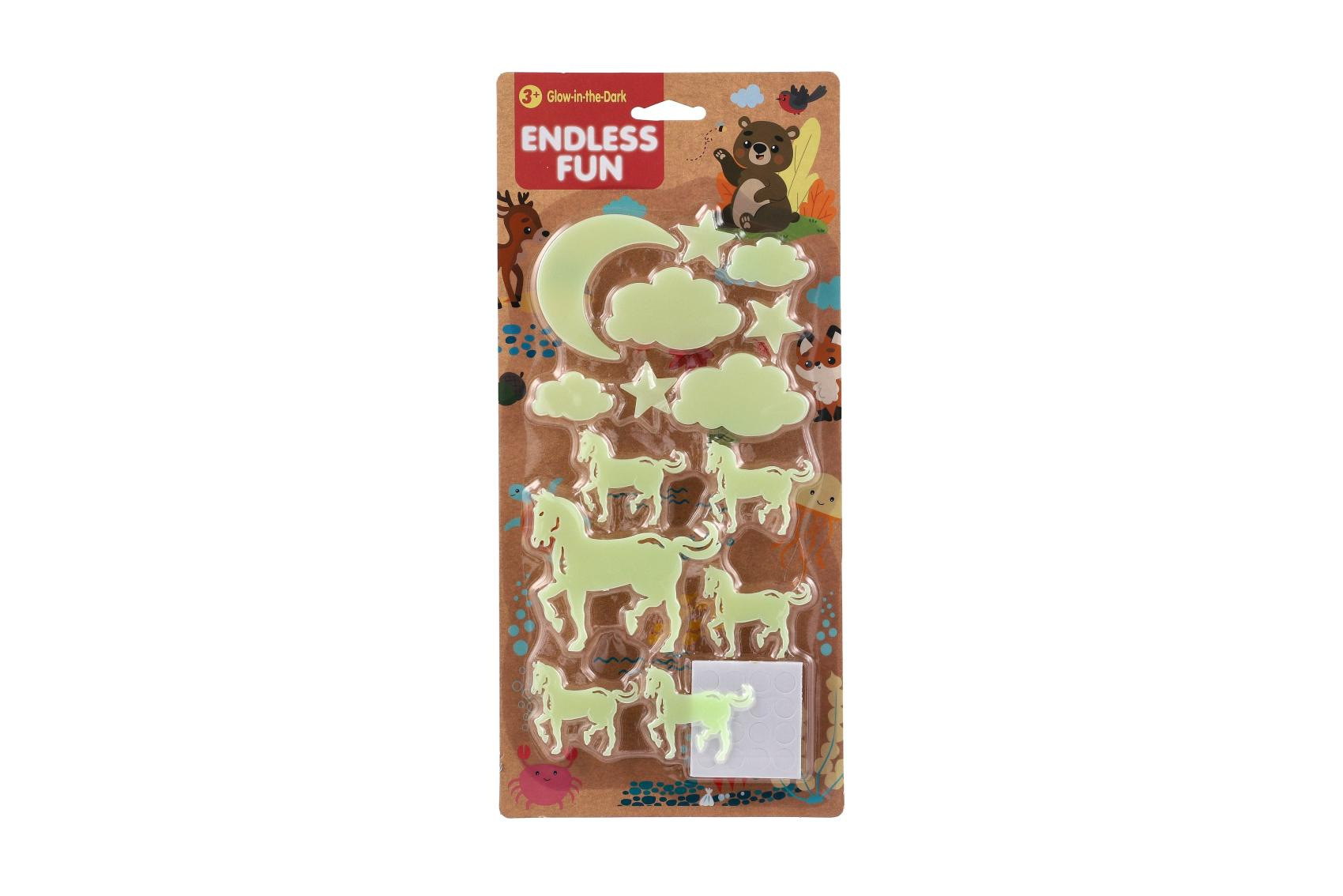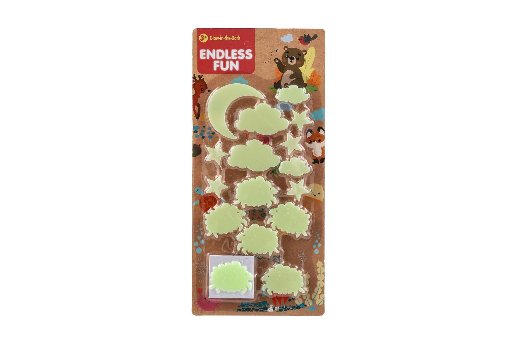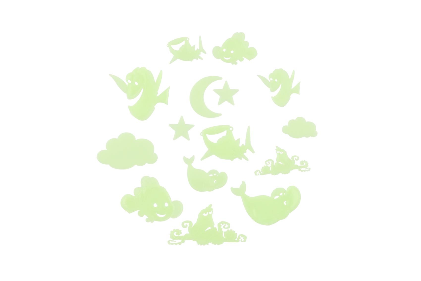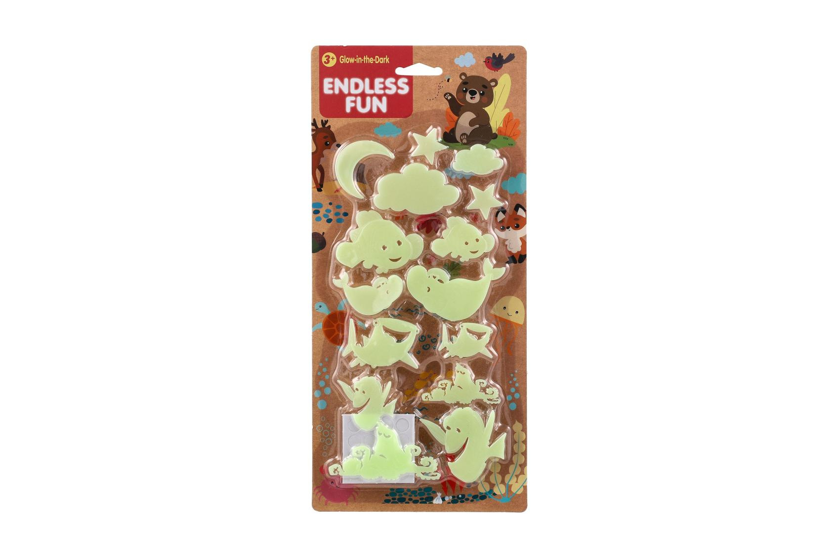 Zvířátka nalepovací na zeď/strop plast svítící ve tmě plast 3 druhy na kartě 15x32,5cm