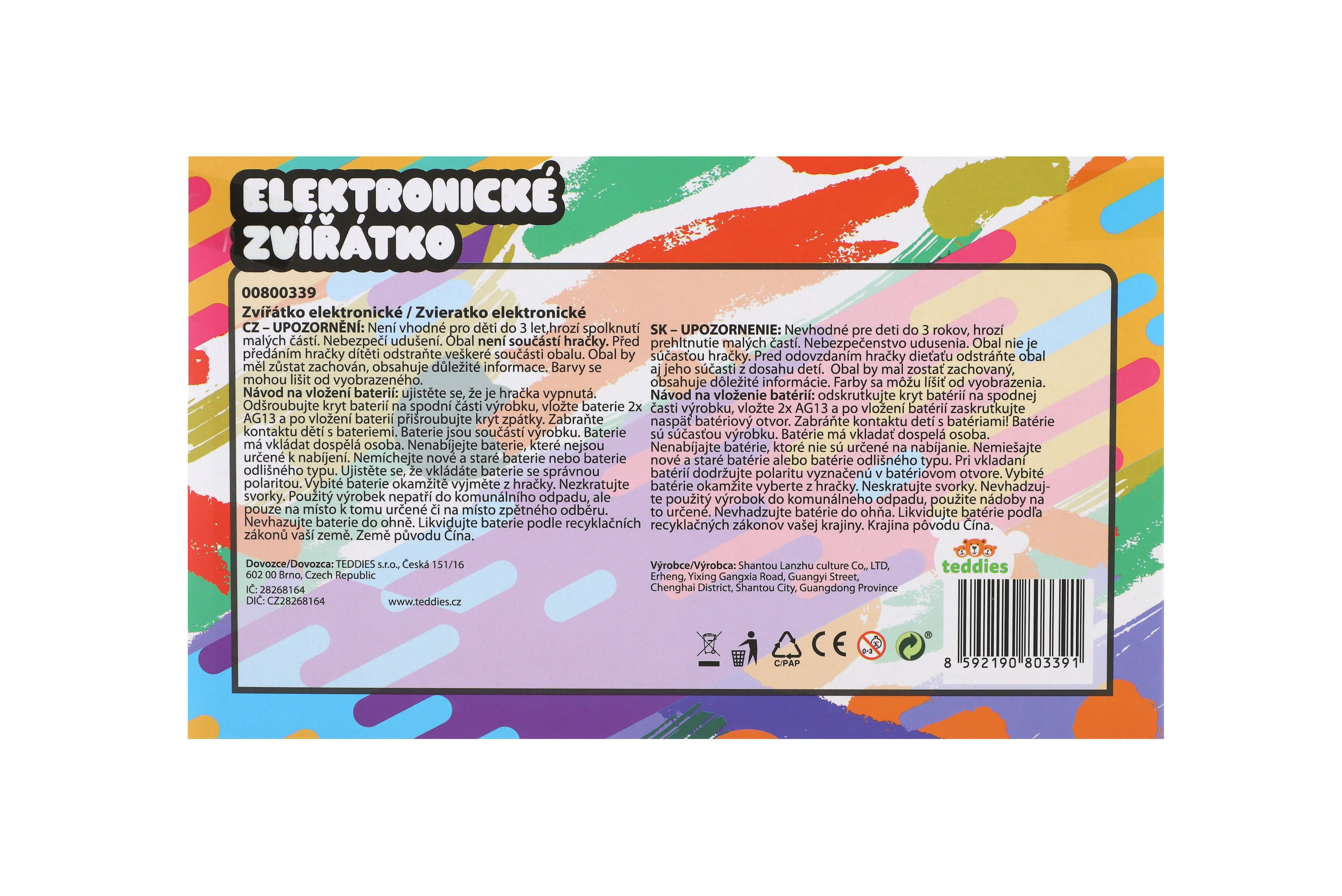 Popis Teddies Zvířátko elektronické přívěsek plast 5x6cm na bat. 4 barvy se zvukem