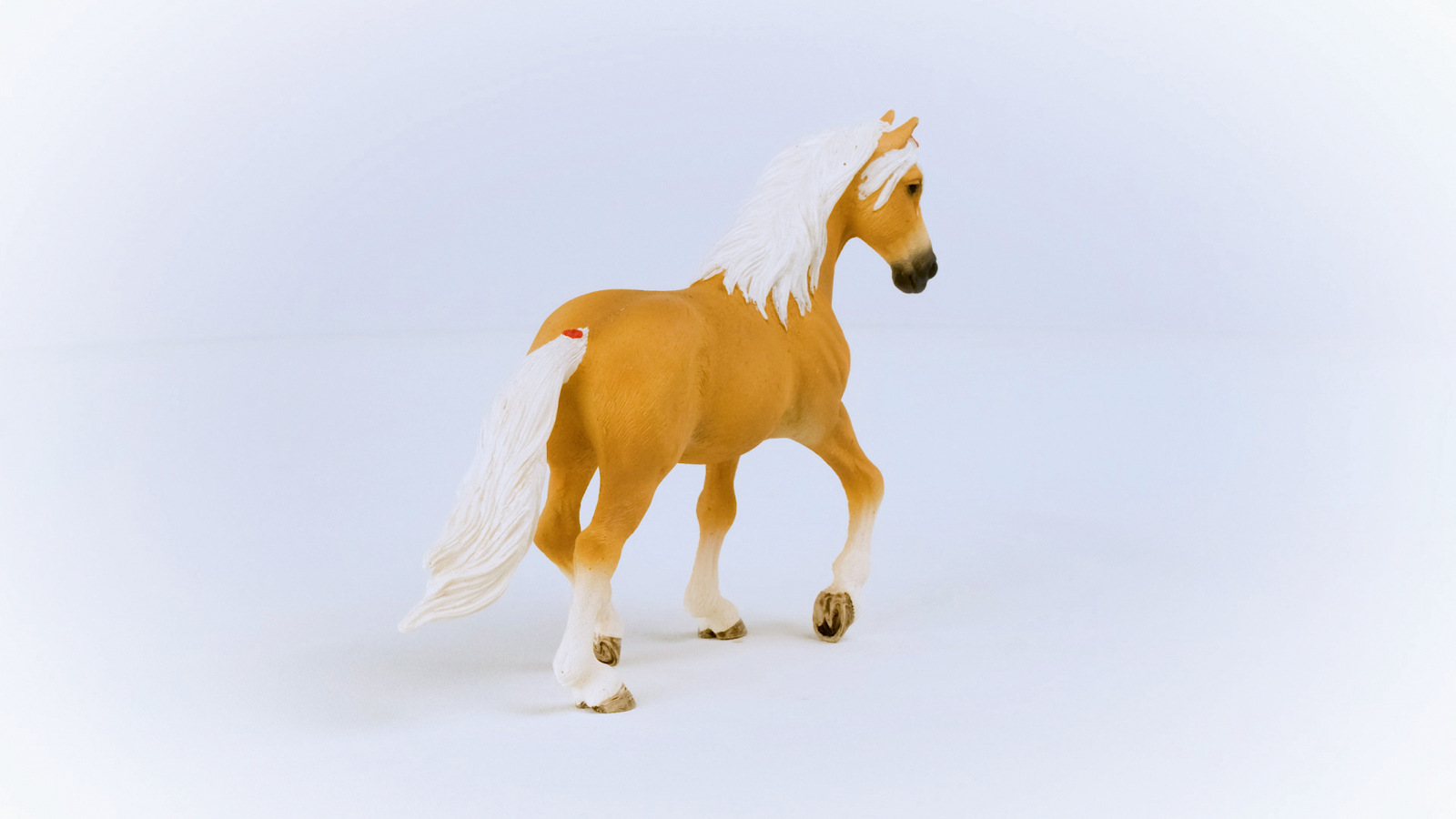 Jen sleduj, jak se tenhle hrdý hřebec plemene peruánský paso prohání po zahradě! Se svou bujnou hřívou a elegantně prohnutým krkem přitahuje pozornost všech. Pozorně střihá svýma hezkýma ušima. Možná čeká, že na další přehlídce vyhraje všechna ocenění? Rozhodně na to vypadá! Může předvést svou speciální chůzi Paso Llano, kterou ovládají jen koně plemene peruánský paso. Rozměry: 14x10,5x3,5cm. Vhodné pro děti od 3 let.