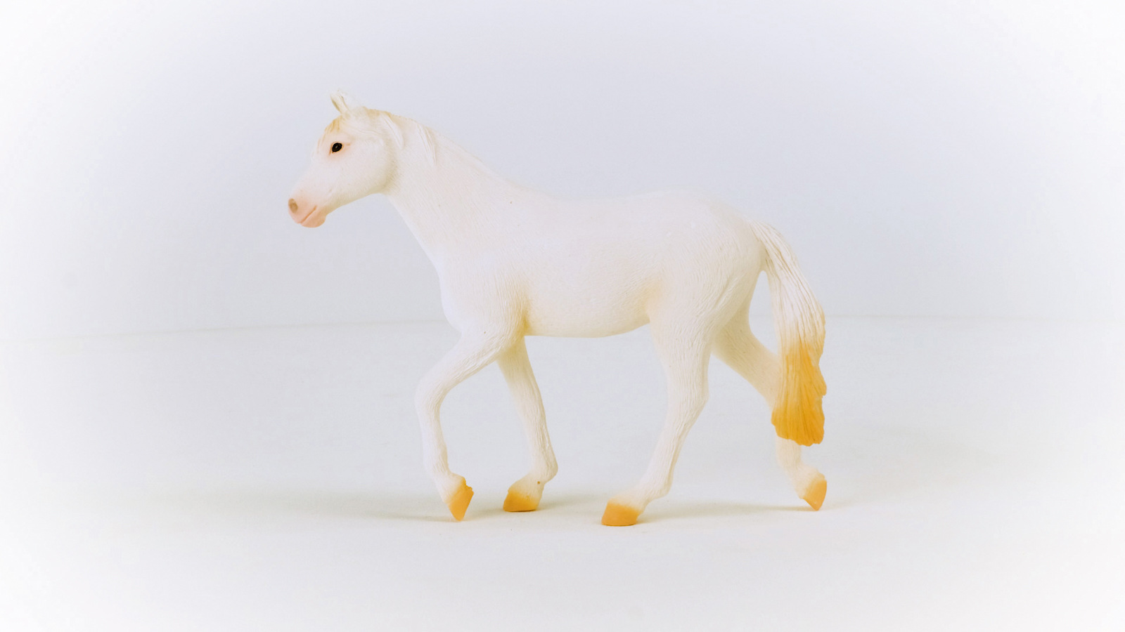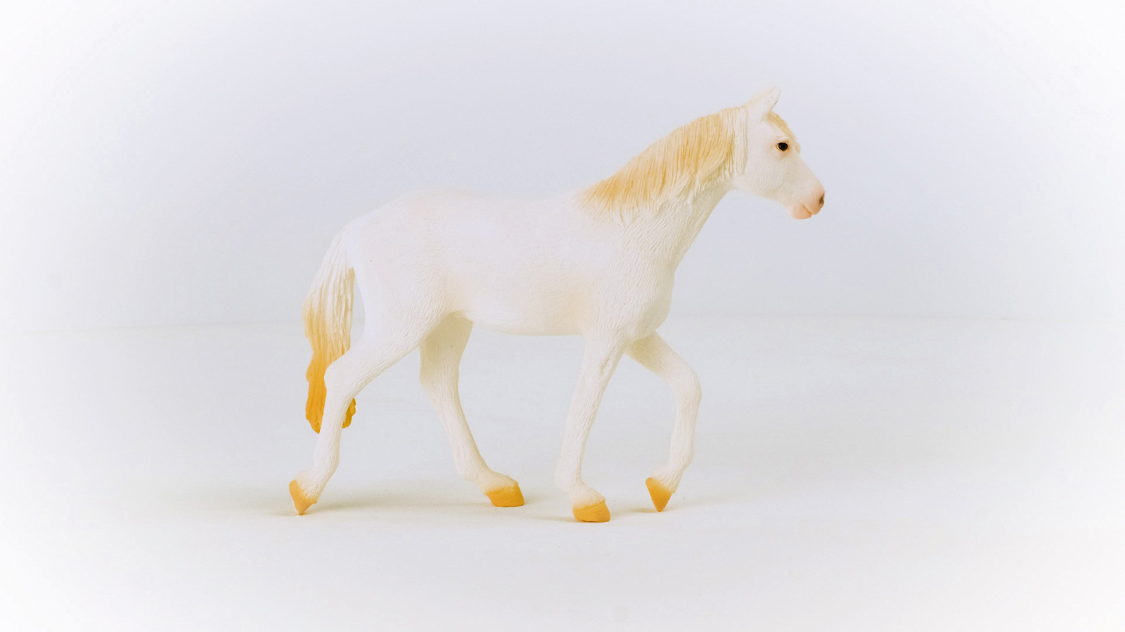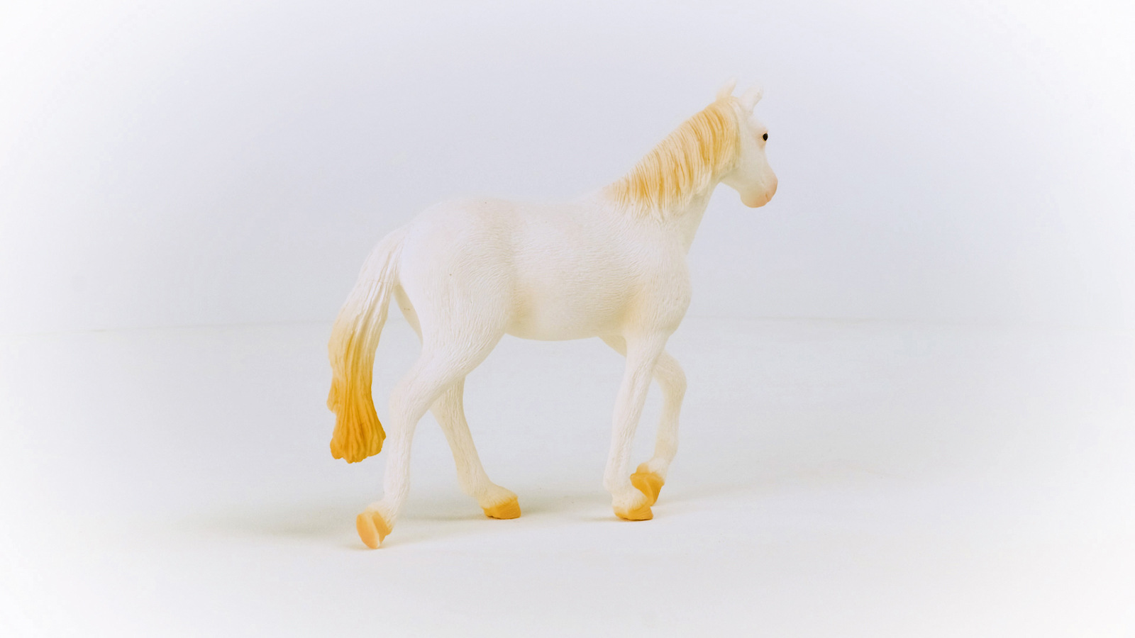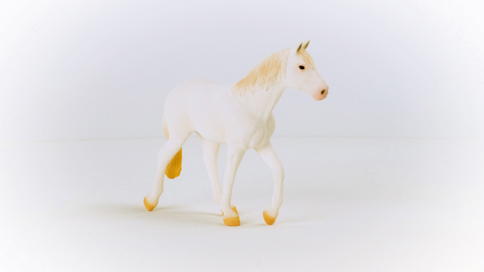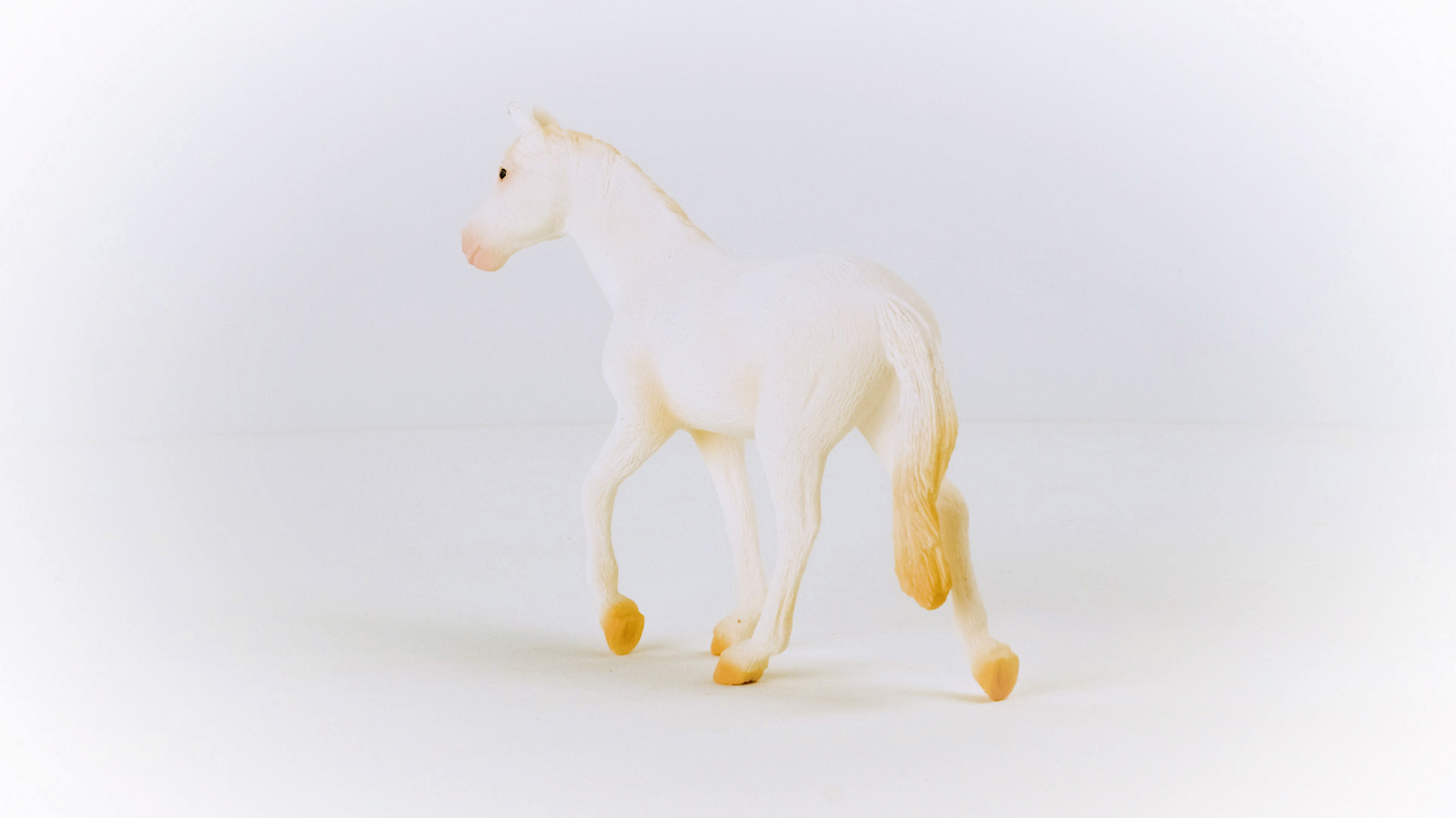 Sněhobílá srst, bílá kopyta a světle růžové nozdry… Klisna plemene Camarillo je skutečná krasavice. Není divu, že se ráda předvádí na přehlídkách. Její dokonalá srst je skutečnou raritou. Je to proto, že všichni čistě bílí koně plemene Camarillo pochází z jediné malé rodiny koní z USA. Vůbec první hřebec se jmenoval Sultan. A jaké jméno dáš téhle krásné klisně ty? Rozměry: 13,5x13,5x3cm. Vhodné pro děti od 3 let.